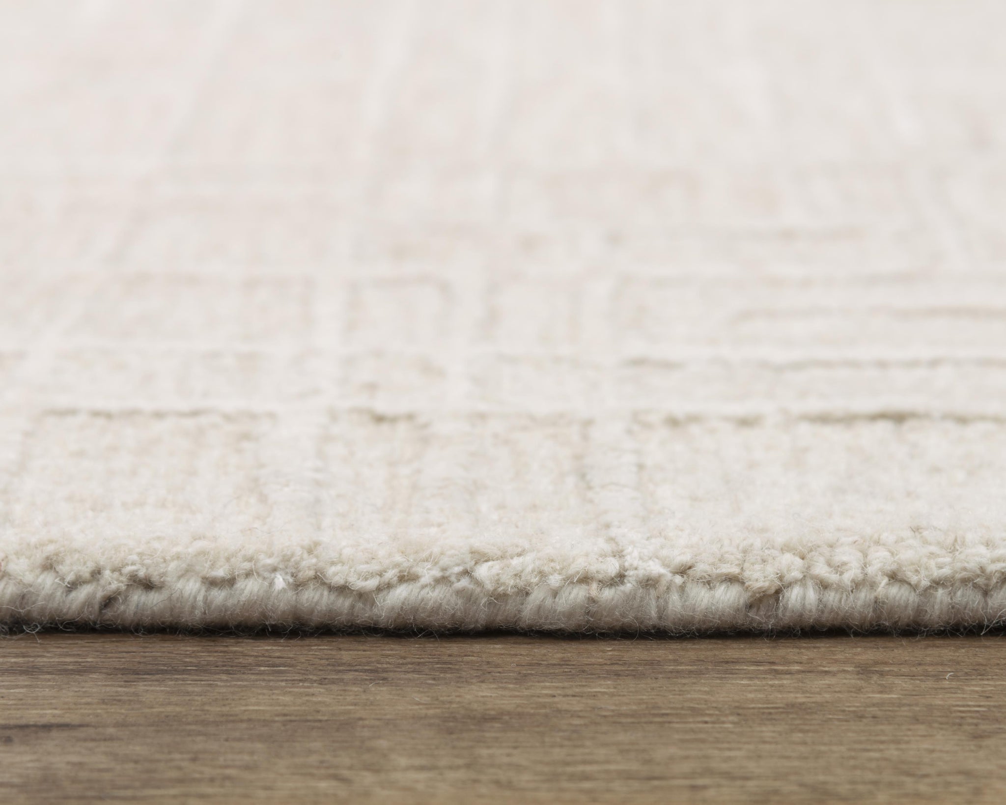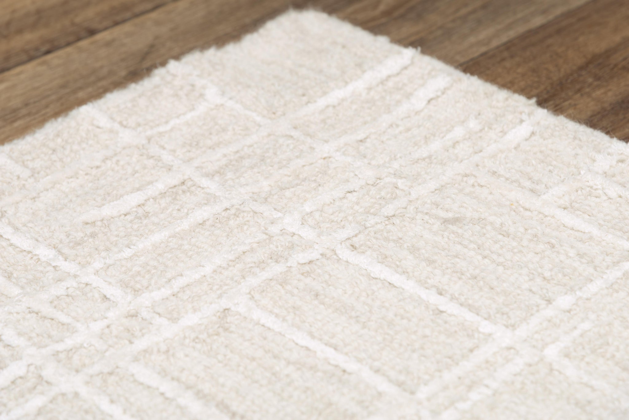 This hand-tufted 100-percent wool rug is done in nice pencil lines of ivory cut pile over a field of ivory loops giving your room a very clean, posh presentation. The random tone-on-tone lines overlap in a background of loops giving a refined, understated vibe. The modern and contemporary Rizzy Home Jazz Ivory Hand-tufted Hand-surged Rug blends harmoniously in any room.