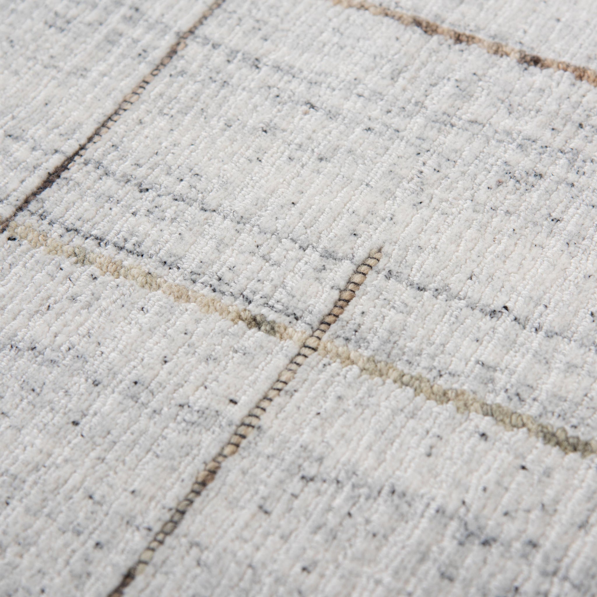 This simply stunning rug from Rizzy Home Kiki Collection is intricately hand-loomed in a soft Tencel and wool blend, epitomizing the harmony of contemporary modern design and the expert craftsmanship of India that Rizzy Home is known for. The neutral colorway in ivory is delicately accented with bold flecks of beige and charcoal, arranged in subtle line patterning for an understated, yet striking combination. The cozy warmth and soft neutrality of this rug can anchor any room, making it easy to add your own style touches of color and texture to make your living space your own--in durable sophistication that's also soft underfoot.