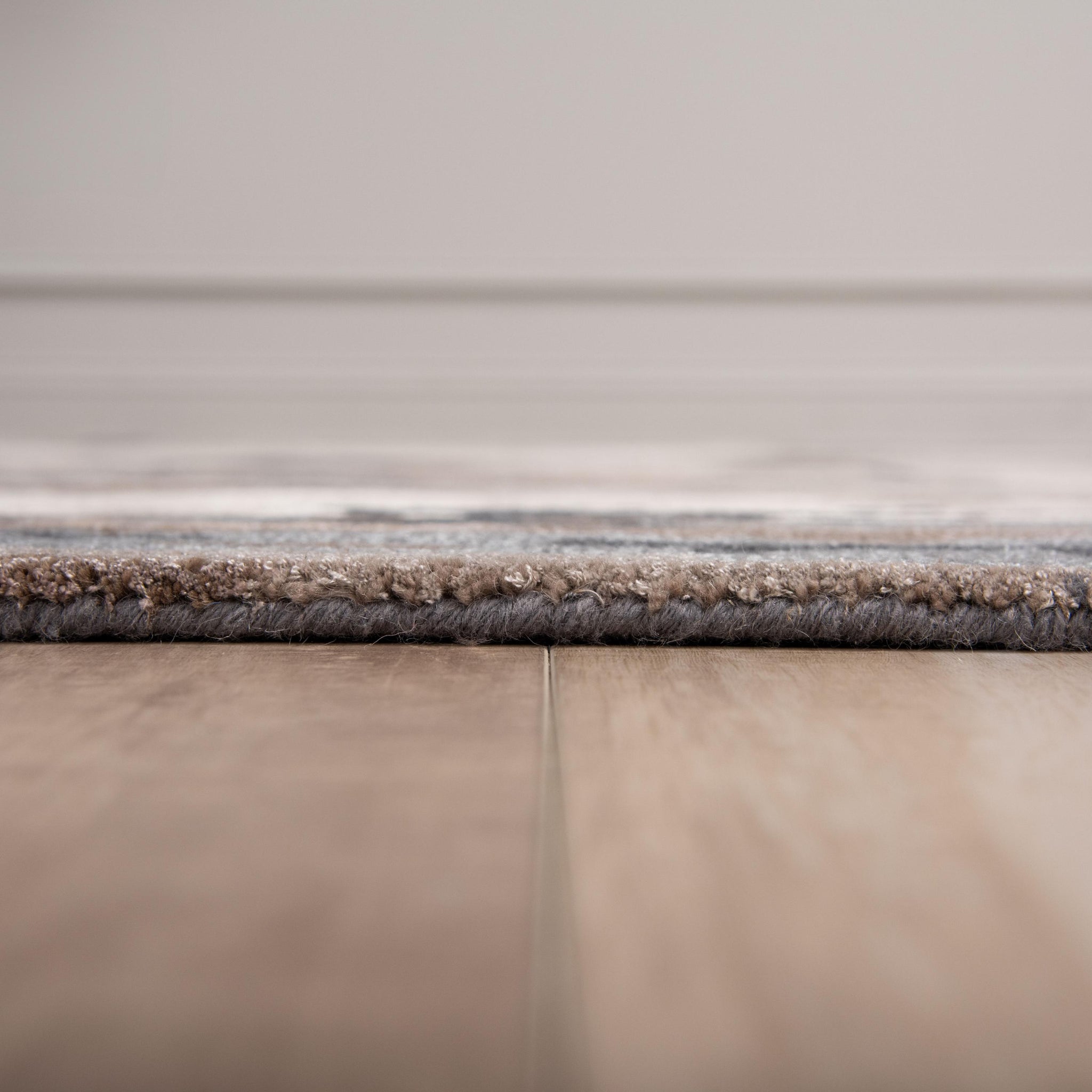 This work of art rug from the Rizzy Home Kinetic Collection is simply captivating. The design is not just a floor covering; it's a true work of art that can anchor any interior style motif with its eclectic charm. Hand-tufted with care, this rug features a luxurious cut pile crafted from a Durapoly and wool blend, ensuring both durability and supreme softness underfoot. Its ultra-dense construction provides unparalleled quality, while shimmering accents add a touch of subtle sophistication. In a striking colorway of blue, dark teal, grey, charcoal, brown, beige, and ivory, this rug boasts an incredible abstract design that exudes modern contemporary flair with artistic influence. Each detail is meticulously hand-serged in India, showcasing unparalleled craftsmanship. Elevate your space with the chic and modern allure of this eclectic statement piece that effortlessly enhances any interior with its beautiful colorway and uniquely designed aesthetic.