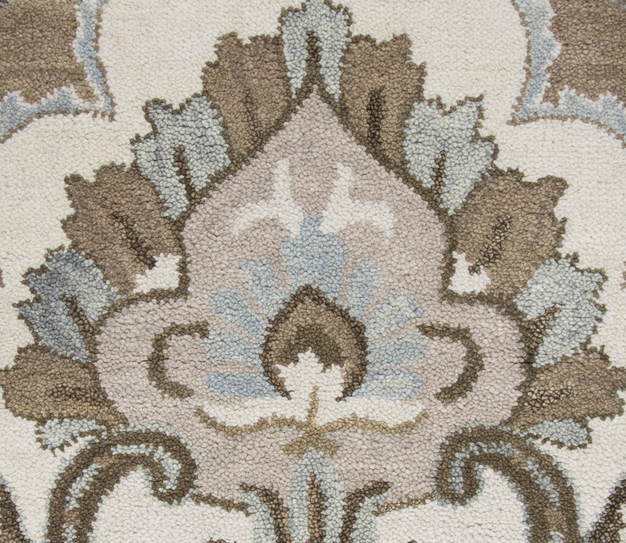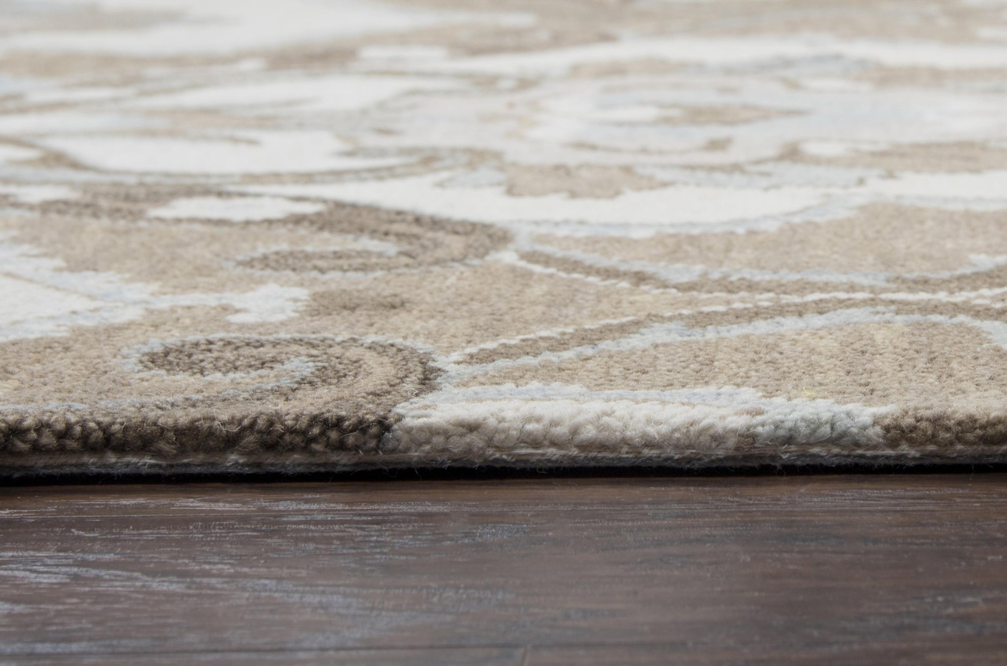 The grandeur of our exclusive floral design of this Rizzy Home Leone Rug makes it the perfect addition to a great room, living room, entry way, or bedroom in your home or office décor. This rug has neutral tones of brown, beige, grey, and ivory. The rug is made with 100-percent hand-tufted wool that is both soft and durable. The appealing stacked, ornate medallions guide your eye from one end of the rug to the other.