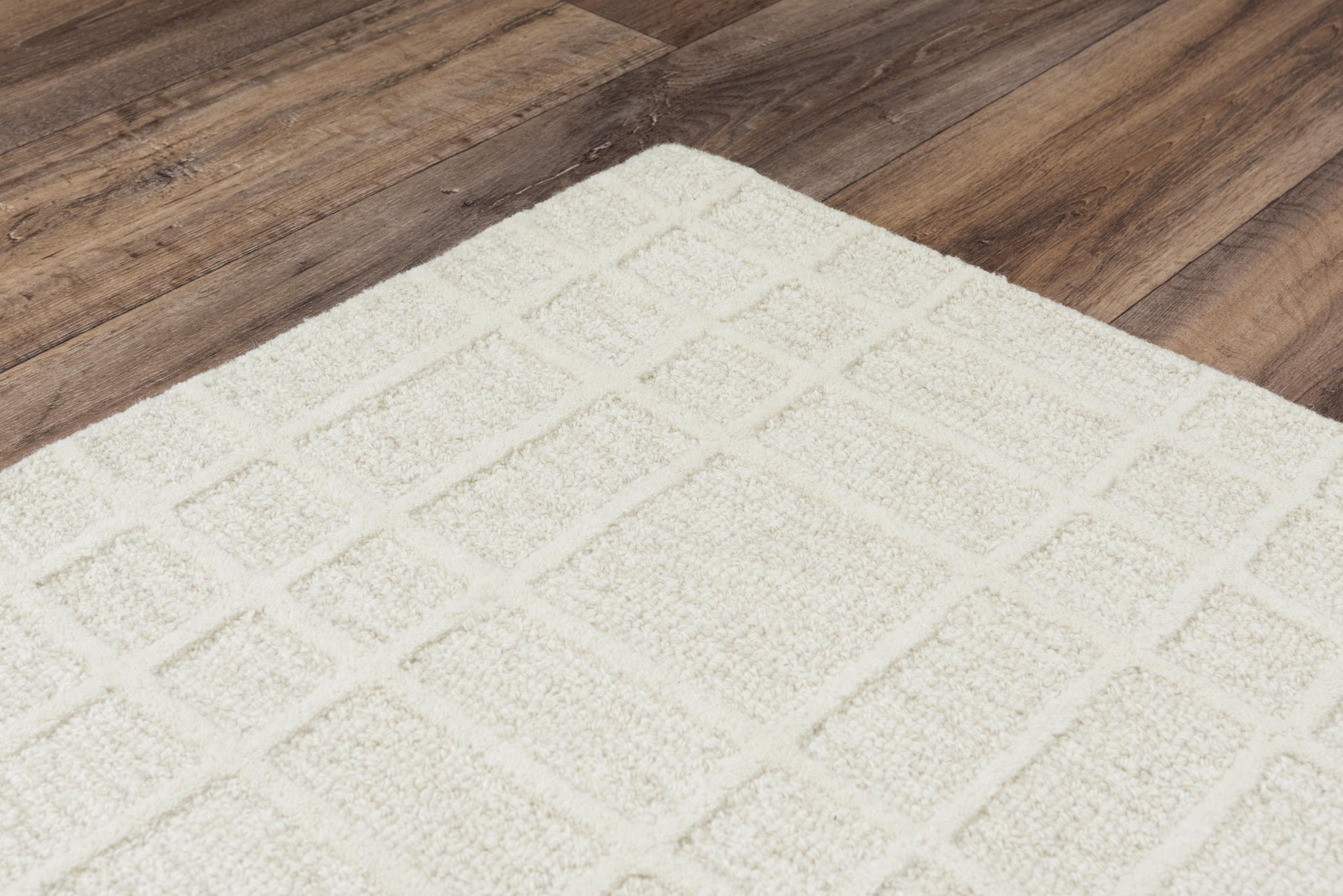 Brighten and soften your space instantly with the addition of this fabulous rug. For contemporary white-on-white elegance the Rizzy Home Lofton Ivory Plaid Rug is absolutely perfect! Hand-tufted of 100-percent wool using both loop pile and higher, cut pile, is used to make the modern geometric plaid design.