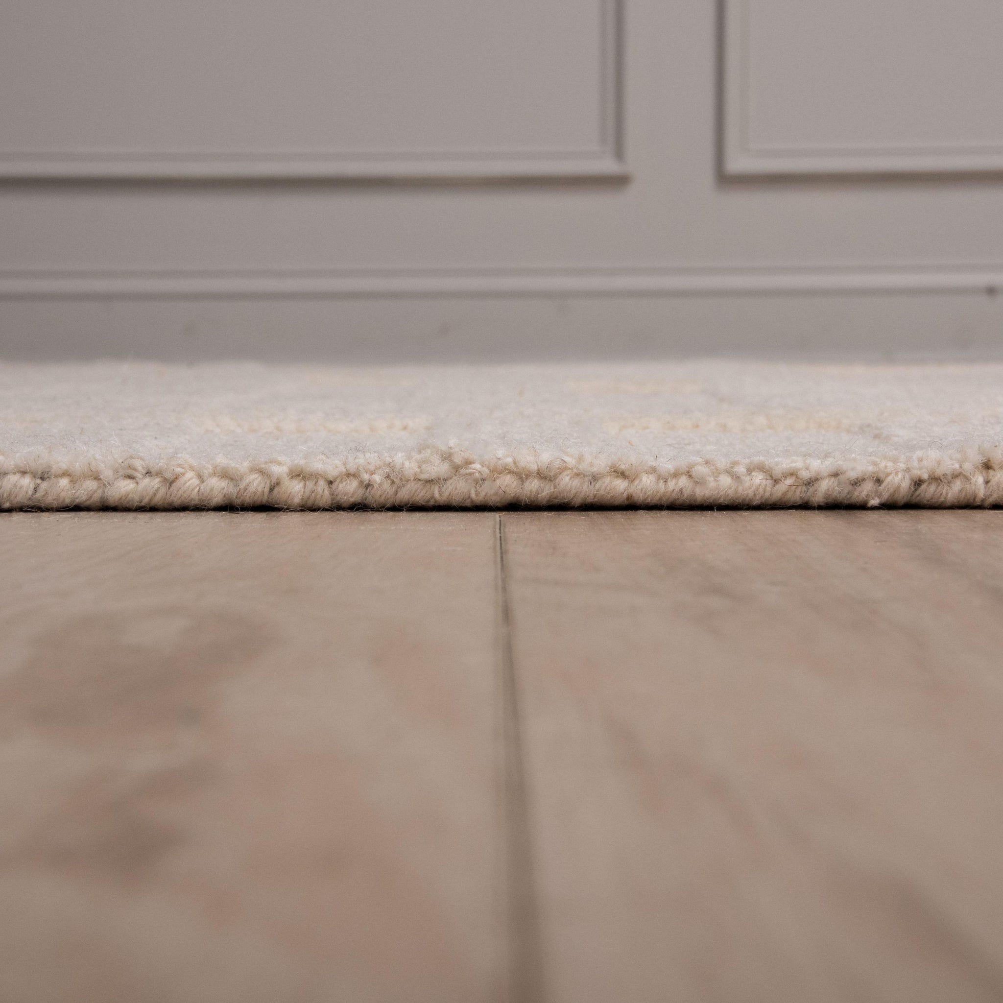 Welcome to modern sophistication. Rizzy Home proudly presents the Lofton Collection, featuring this exquisite rug crafted with meticulous attention to detail–a true testament to contemporary elegance and allure. Adorned with a sophisticated geometric pattern in a harmonious blend of beige hues, this rug embodies understated luxury and exclusivity. Its neutral colorway makes it a versatile choice for transitional styles and layering, while also serving as a captivating room anchor for any style aesthetic. Hand-tufted with precision, this rug boasts a unique combination of cut and loop pile wool, creating a captivating textured look that is both chic and visually intriguing. Its tight loop pile construction adds depth and dimension to any space, setting the stage for an urban-inspired ambiance. Complete with a durable cotton canvas backing, this rug ensures longevity and stability, making it suitable for high-traffic areas of your home. Handcrafted in India, it exudes an air of refinement and sophistication that effortlessly elevates any room.Whether as a focal point or a complementary piece, this rug's urbane design and textured allure will make a statement that resonates with modern sensibilities. Experience the fusion of style and comfort with this exclusive rug, where every detail speaks of timeless elegance and modern flair.