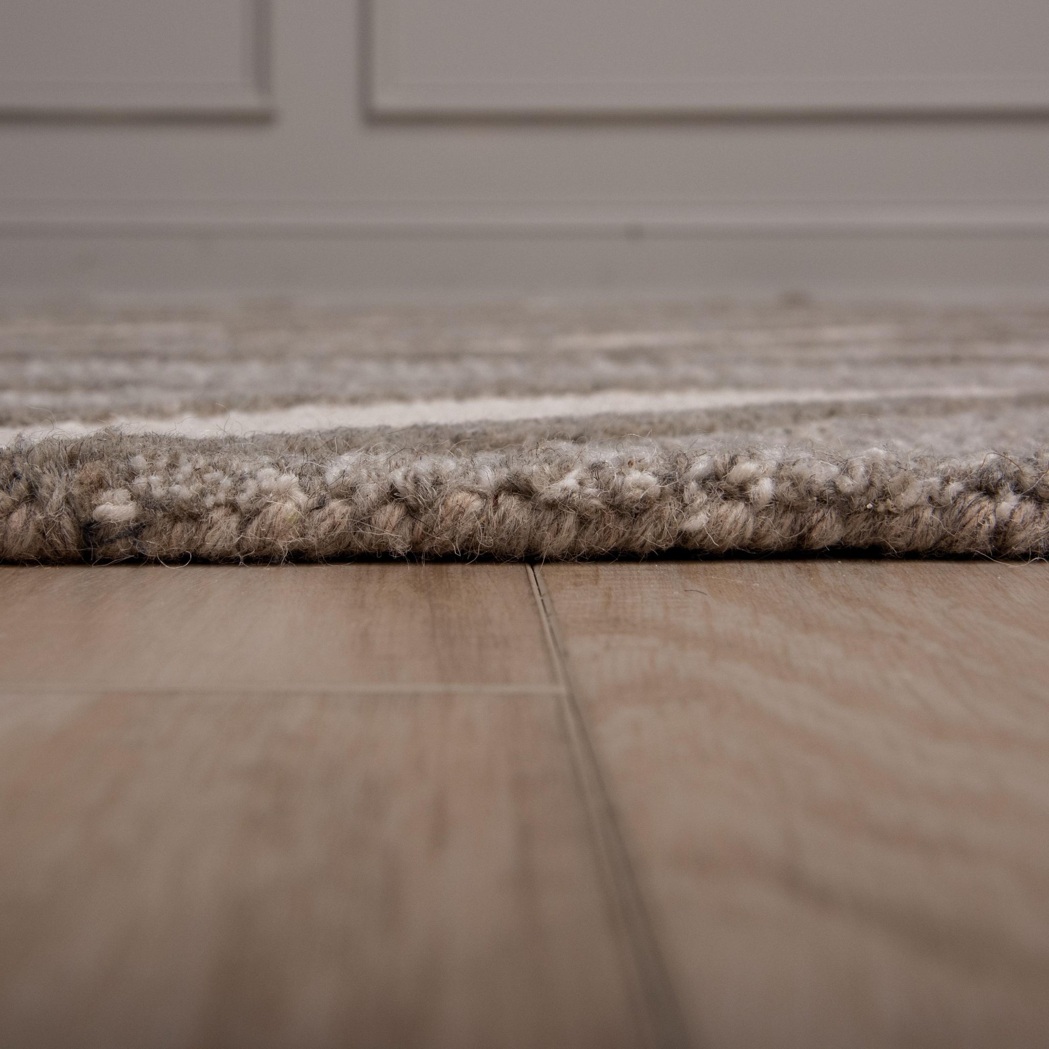 Rizzy Home's prestigious Lofton Collection presents this stunning rug, crafted with unparalleled precision–a true masterpiece of modern design. This rug is poised to elevate any interior space with its unrivaled sophistication and ultramodern allure. Forged from opulent 100% wool and boasting a meticulous combination of cut and loop pile, this rug possesses a distinct texture that imbues any room with unparalleled depth and dimension. Its tight loop pile construction creates an enthralling visual appeal, seamlessly merging contemporary flair with timeless craftsmanship. Draped in a chic fusion of slate Gray and beige hues and accentuated by sleek geometric lines, this rug emanates an understated yet commanding elegance. Its neutral color palette renders it a versatile addition to any décor style, effortlessly transitioning between diverse design aesthetics with effortless grace. Enhanced with a resilient cotton canvas backing, this rug not only exudes style but also promises enduring durability for years to come. Crafted in India with an exclusive design, it serves as a true testament to exquisite artistry and enduring beauty.