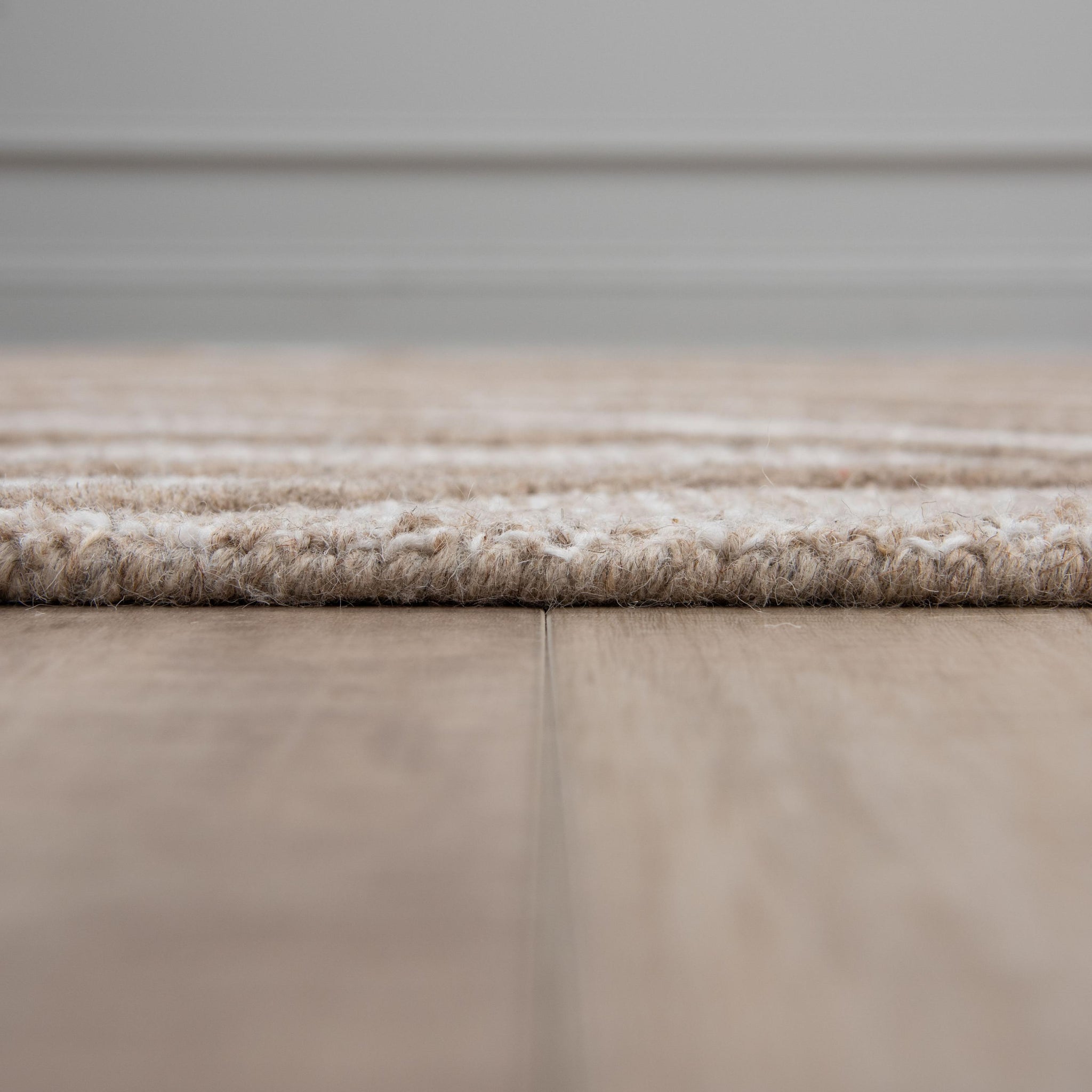 This Rizzy Home Lofton Collection rug is perfectly sized for various rooms such as the living room, dining area, or bedroom to add a modern flair of visual interest. The tight loop pile enhances the textured look, adding depth and contemporary art to your floors. Hand-crafted by skilled artisans in India, this rug exemplifies exceptional quality and craftsmanship. It’s more than just a rug; it’s a statement of style and sophistication, adding warmth and beauty to your home décor. Discover the modern sophistication of the Rizzy Home Lofton Collection Rug--incorporating rich brown hues meshed with gentle ivory to create a striking geometric and striping pattern for a versatile piece that will enhance and anchor any refined space.