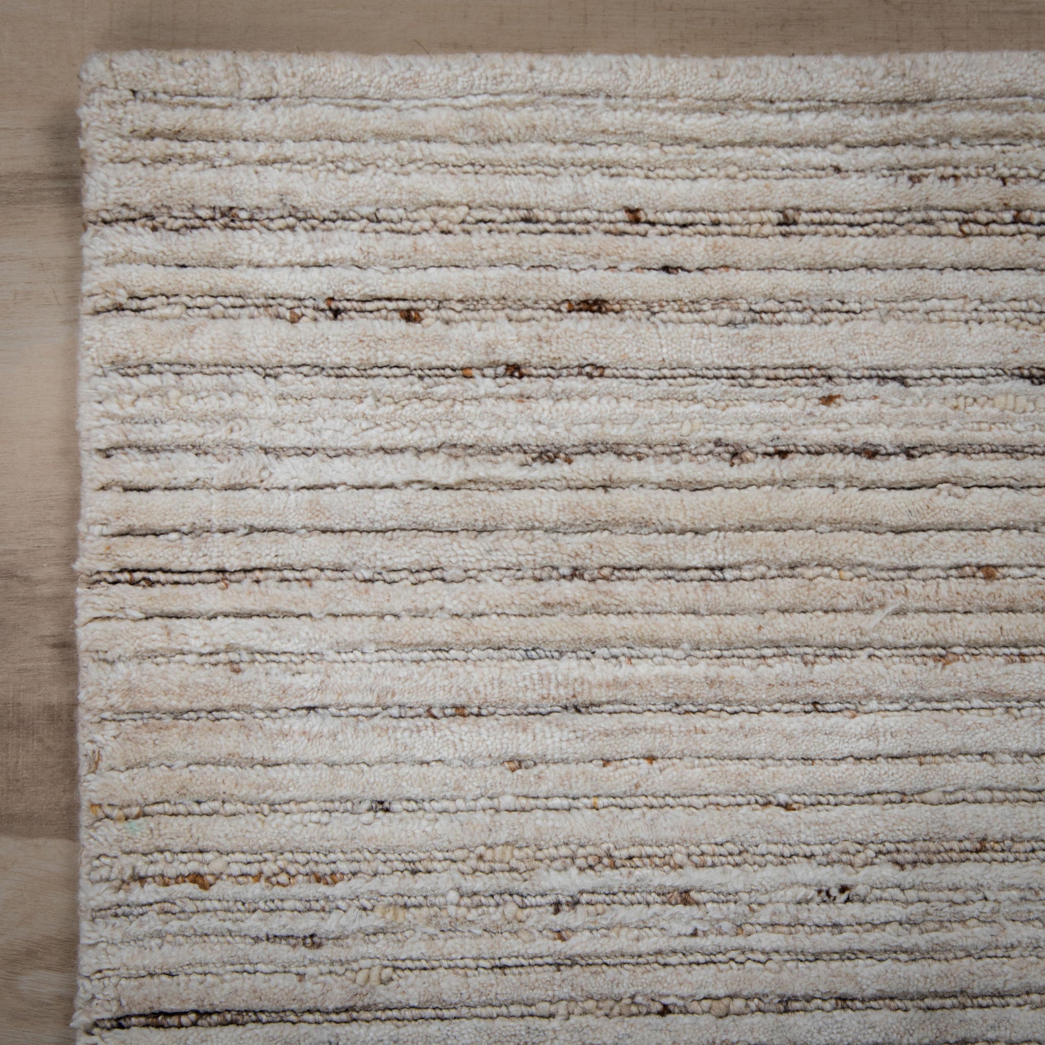 If your home aesthetic leans toward casual elegance with a hint of glamour, the Rizzy Home Luxe Collection is the perfect addition to your space. Hand-loomed by experienced artisans using a rich blend of wool and Tencel, this area rug showcases a high and low pile design that combines loop and cut piles, creating dramatic texture and depth. The soft, heathered tones of beige, ivory, and brown flow effortlessly in linear transitions, while the shimmering tencel accents add a refined touch of sophistication. The meticulous detailing and subtle stripe pattern enhance its versatile, casual transitional style, making it the ideal statement piece to bring a sense of modern luxury and timeless beauty to any room.