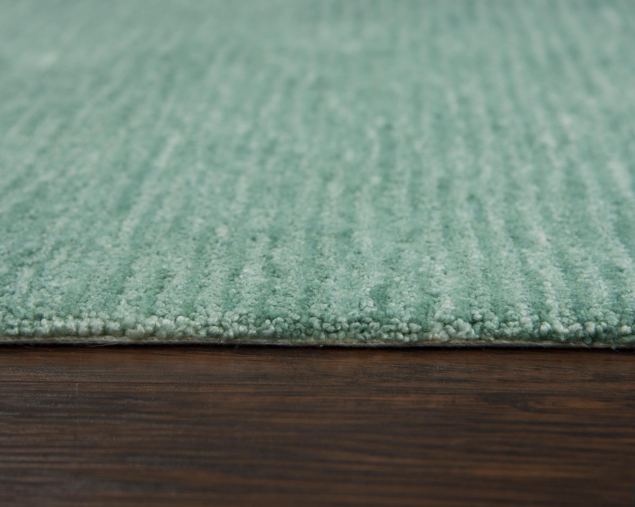 The on-trend aqua-blue-green teal of the Rizzy Home Mason Park Hand-tufted, Solid, Tone-on-tone Rug adds an exquisite dash of color to a covered porch or your casual entryway. The piece is constructed of planet-friendly, environment-saving, 100-percent recycled polyester fibers, including the water-resistant backing. Hand-tufted in alternating rows of loop and cut pile for texture and beauty, this rug is finished with a clean edge.