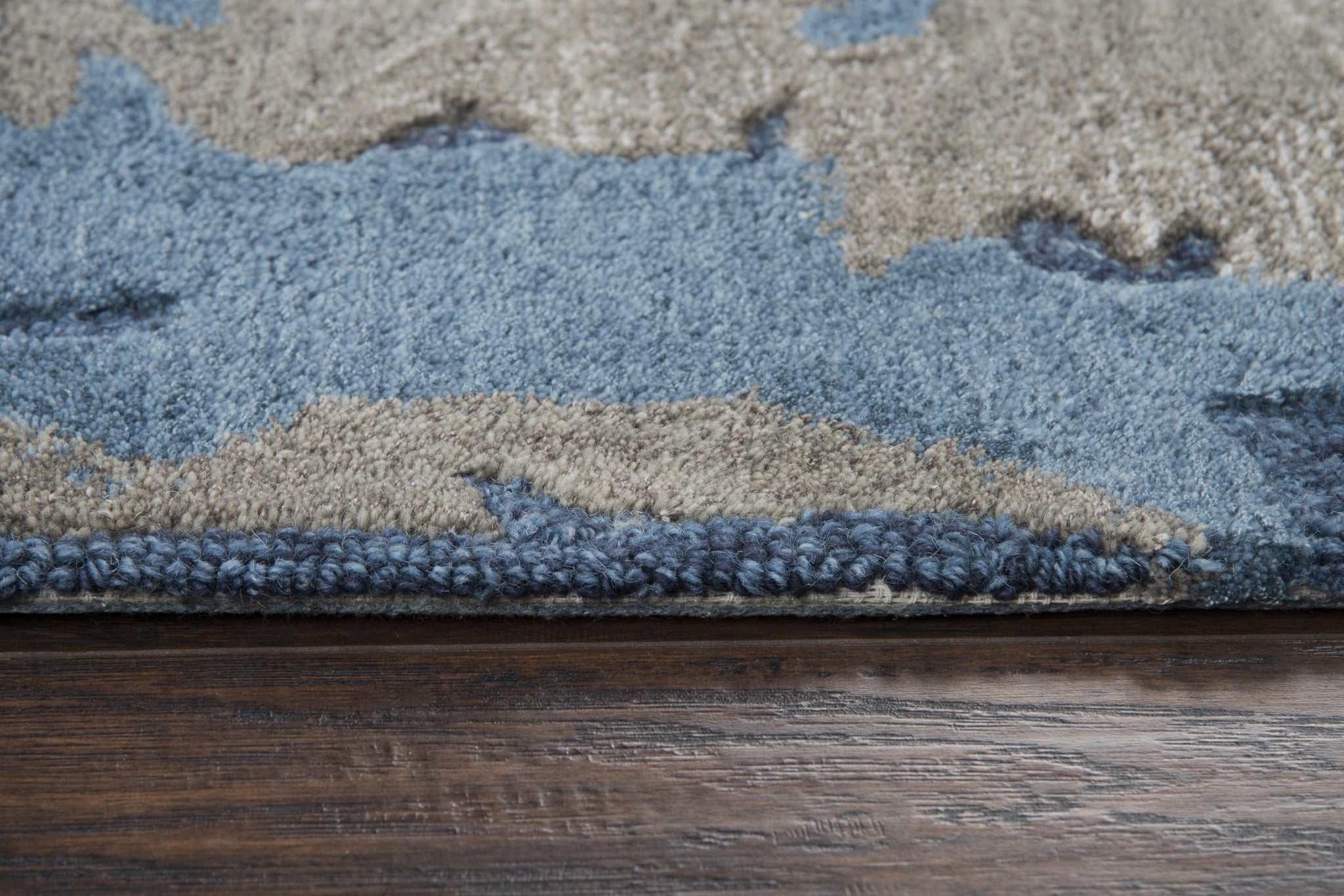 You home or office will be transported to a tropical paradise with the blue, dark blue, grey, and ivory colors. The Mod collection by Rizzy Home is the ideal balance of function and style. This fine, hand-tufted and hand-carved creation is hand drawn by a skilled artisan to beautify your room in fabulous style. The yarn is chosen from all over the globe and is 80-percent wool and 20-percent Tencel.
