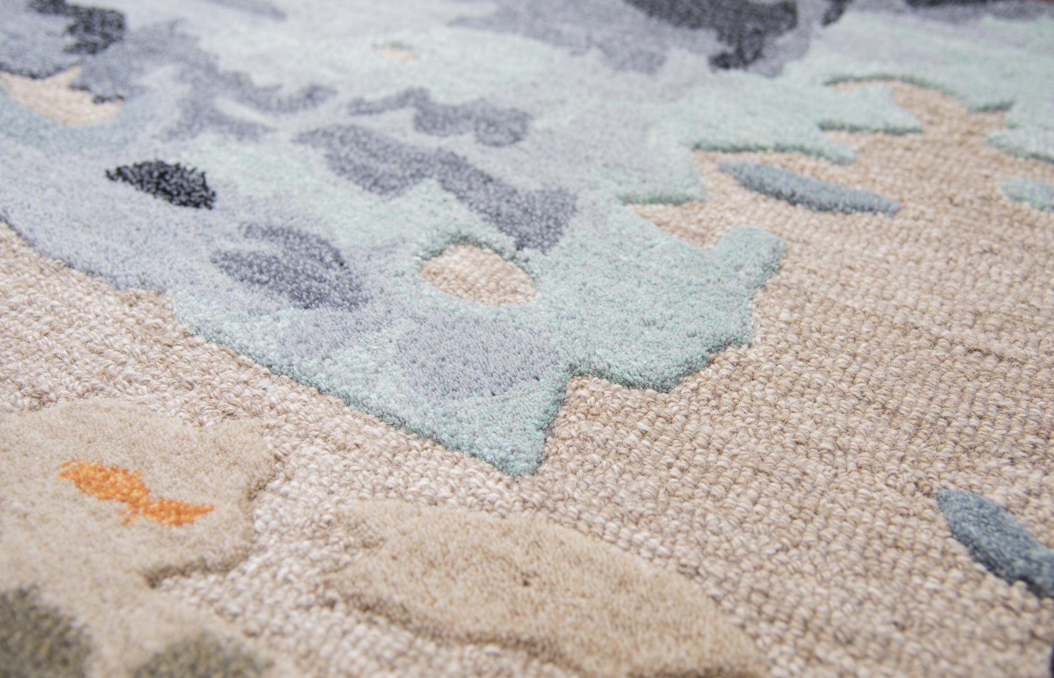 Abstract, Modern design has never looked so SOPHISTICATED! The Mod collection is hand-tufted by true artists in a painterly fashion that is not easily achieved. Comprised of on point fashion color combinations and accented with just a touch of shimmer, each piece from the Mod collection is a showstopper. The combination of loop and cut pile is accented to create depth by hand carving and a hint of Tencel.