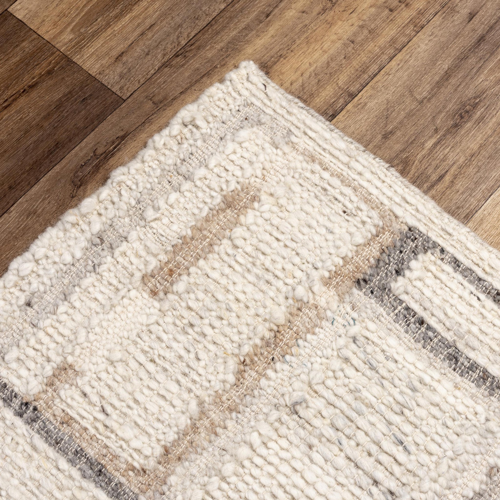 Bring interesting neutral Dhurrie drama to your transitional contemporary decor with this piece. The Rizzy Home Nova Ivory, Beige, and Grey Hand-woven Dhurrie Rug is hand-woven and hand-surged with ivory, beige, and grey select colors of hand-spun 90-percent wool and 10-percent cotton fibers. Make a statement in your space with this stunning rug.