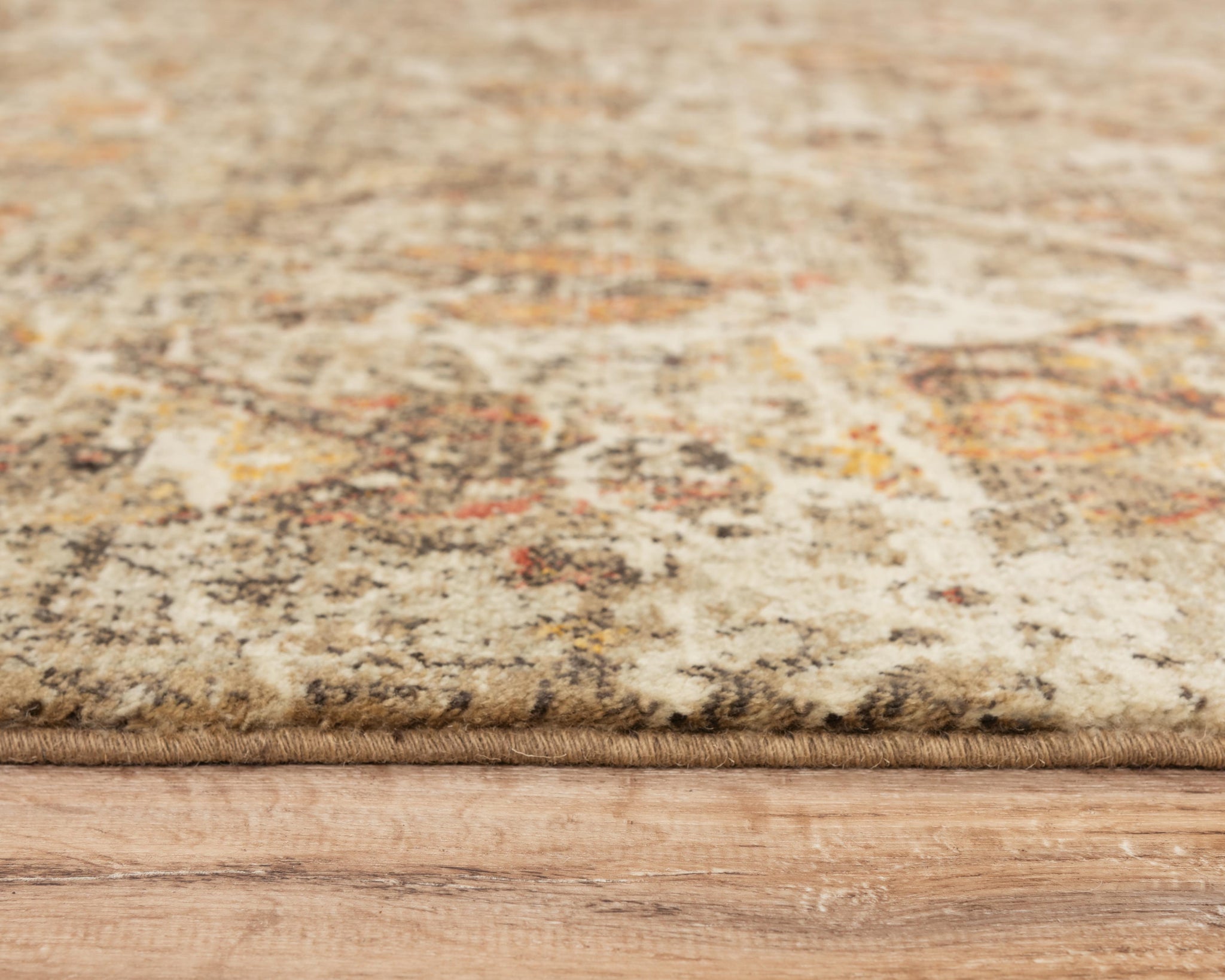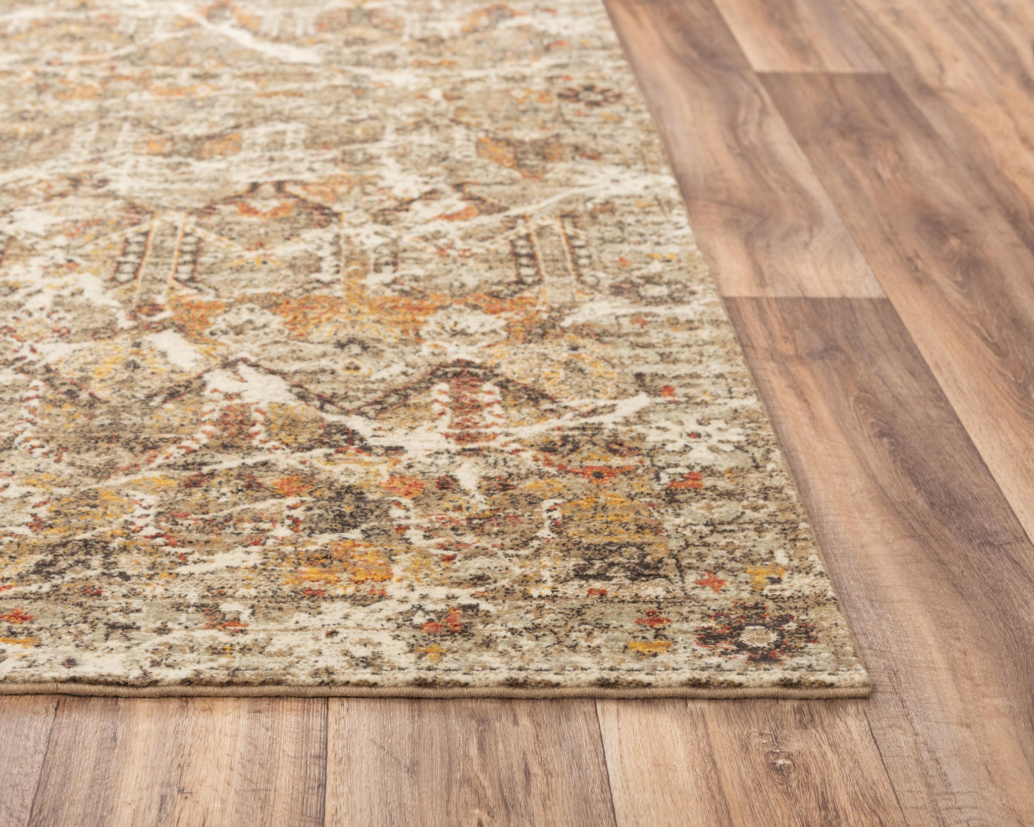 This transitional New Zealand wool rug has rustic flare and boasts an array of colors in a classical, abstract pattern. Hints of copper and gold mixed with distressed beige and ivory give dimension and texture to the Ovation Rug by Rizzy Home. The backing is made of a cotton and polyester blend which makes it safe on all floor types. The hybrid construction ensures the highest quality, and the surged edging creates a smooth, finished look.