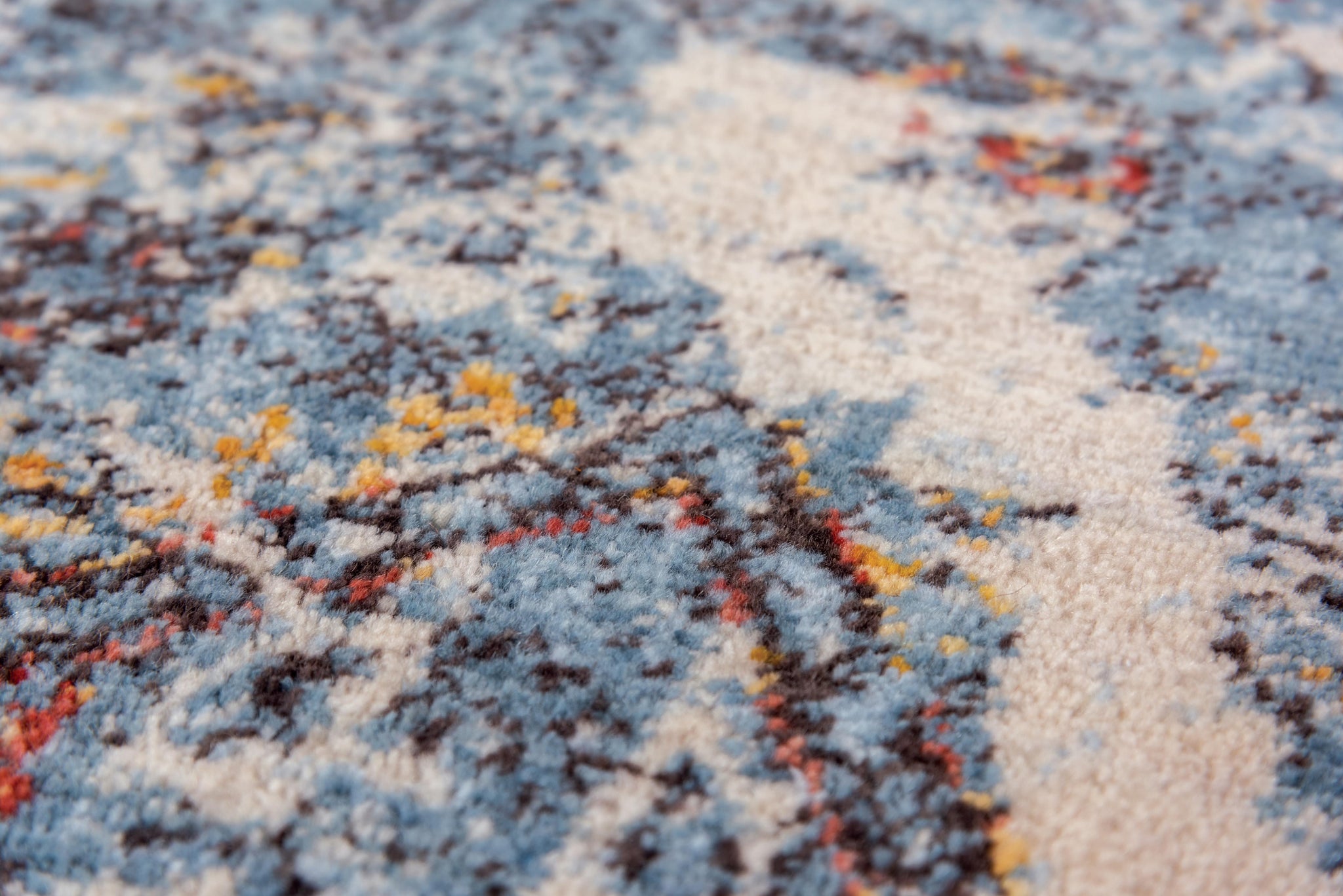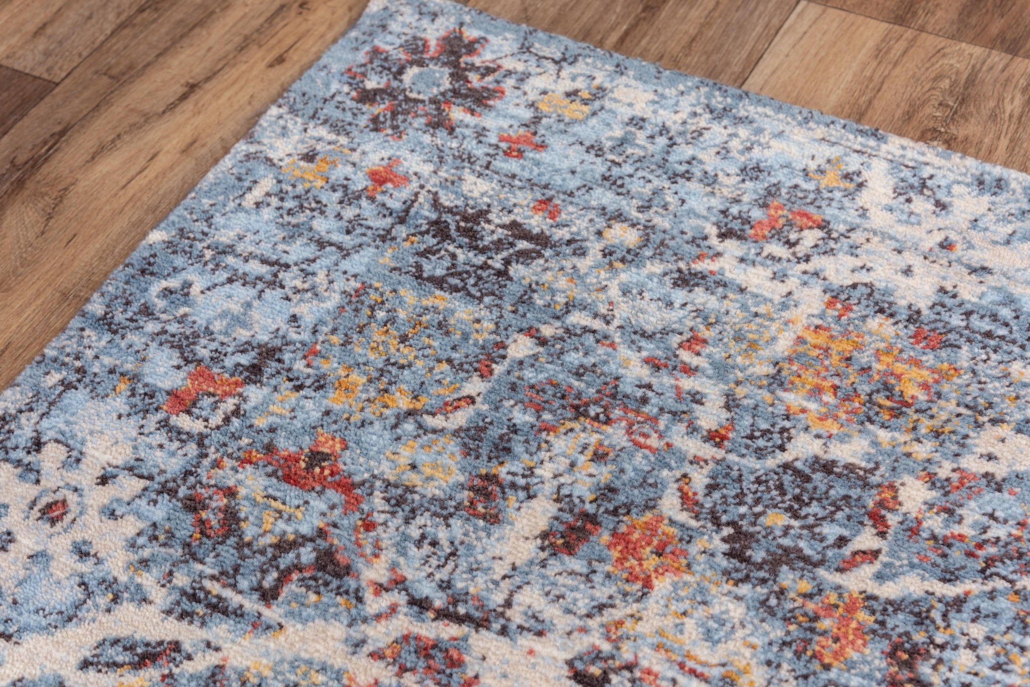 Unite your boho transitional style of decorating with this alluring Rizzy Home Ovation Blue, Ivory, Black, and Rust 100-percent New Zealand Wool Rug. The splashes of bright colors mixed in with the blue and ivory will enhance your ability to highlight primary decorating furniture. The cool tones soothe your mind while the pop of brighter colors invite you to be cozy.
