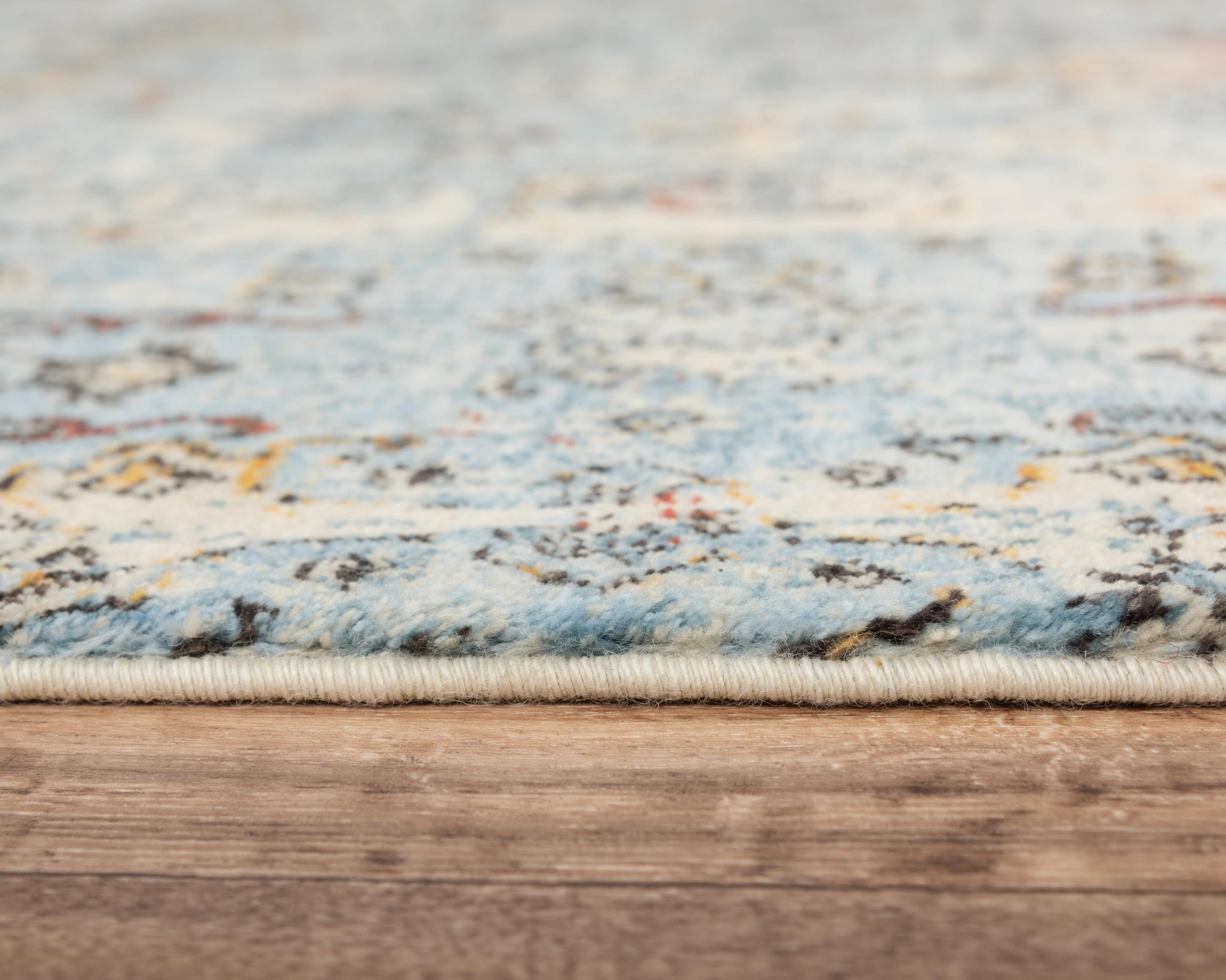 Escape to a time gone by with this distressed Rizzy Home Ovation Blue, Ivory, Black, and Rust Floral Scroll Wool Rug. The pattern on the rug fades in and out as if it is a treasure from the past while being made from hand-washed and hand-finished 100-percent New Zealand wool. Soft to both the touch and the eye, this rug will enhance your transitional or rustic style home or office décor.
