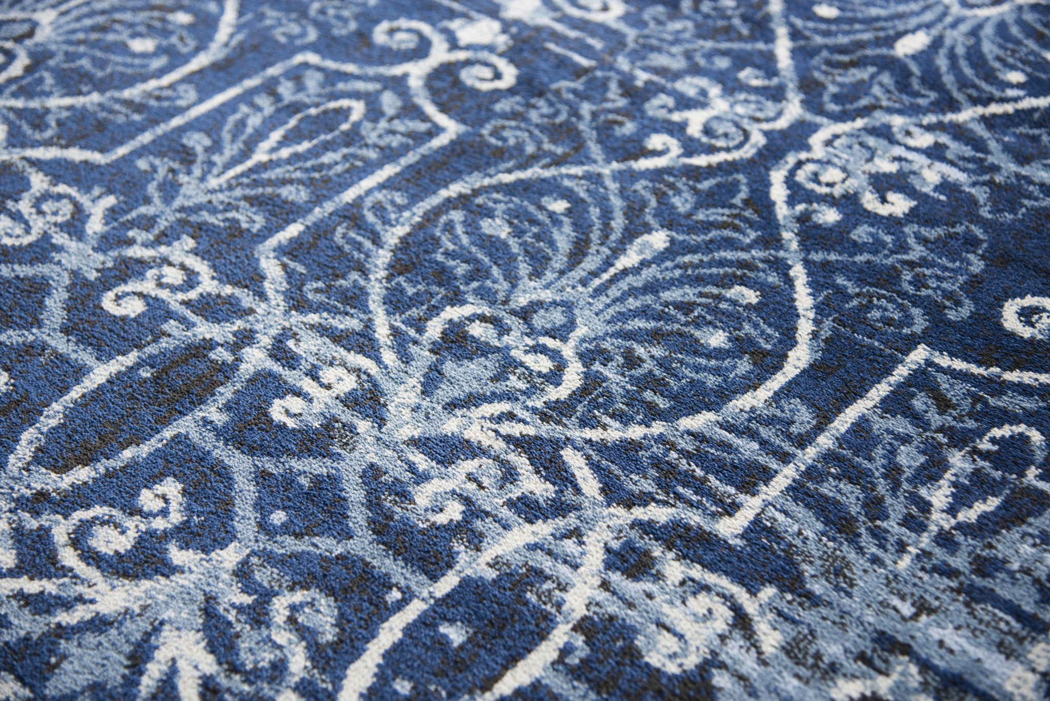 The Panache collections features stunning designs ranging from updated Traditional to Modern, created to fit perfectly into today's trends! Using a wide variety of shades in today’s hottest colors, the blues, grays and cream accents make every rug from Panache on point for today’s consumer. Power loomed in India using our exclusive new yarn ZIRLON to have the rich look and soft feel of wool with the clean ability and affordability of traditional synthetic fibers.