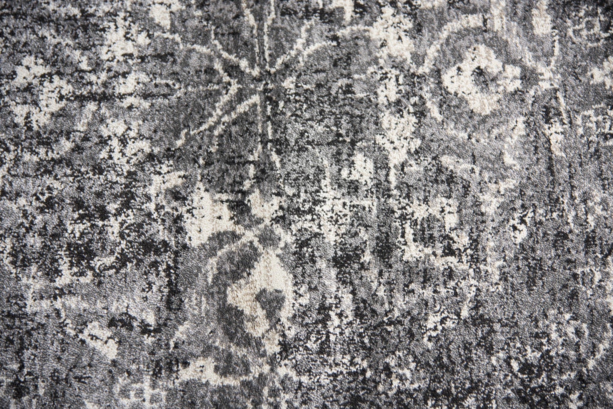 A neutral ivory medallion is encircled with a striking contrast of black and grey in this Classical Rizzy Home Panache Rug. Power-loomed with our exclusive heat-set polypropylene Rizlon yarn, this rug is soft to the touch and durable. This piece features jute backing and is truly a classic addition to your transitional home or office décor.