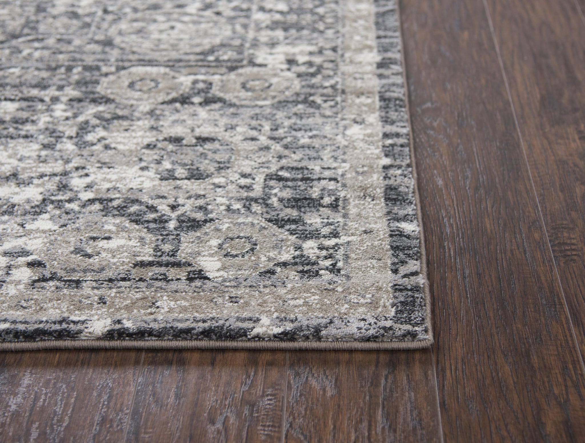 With the charm of a family heirloom, this Rizzy Home Panache Medallion Rug has been given a distressed look in its neutral beige, cream, grey, and black pallet of colors. The piece is power-loomed using our exclusive Rizlon yarn for softness and durability. The jute backing is certainly a sublime addition to your traditional or rustic home or office décor.