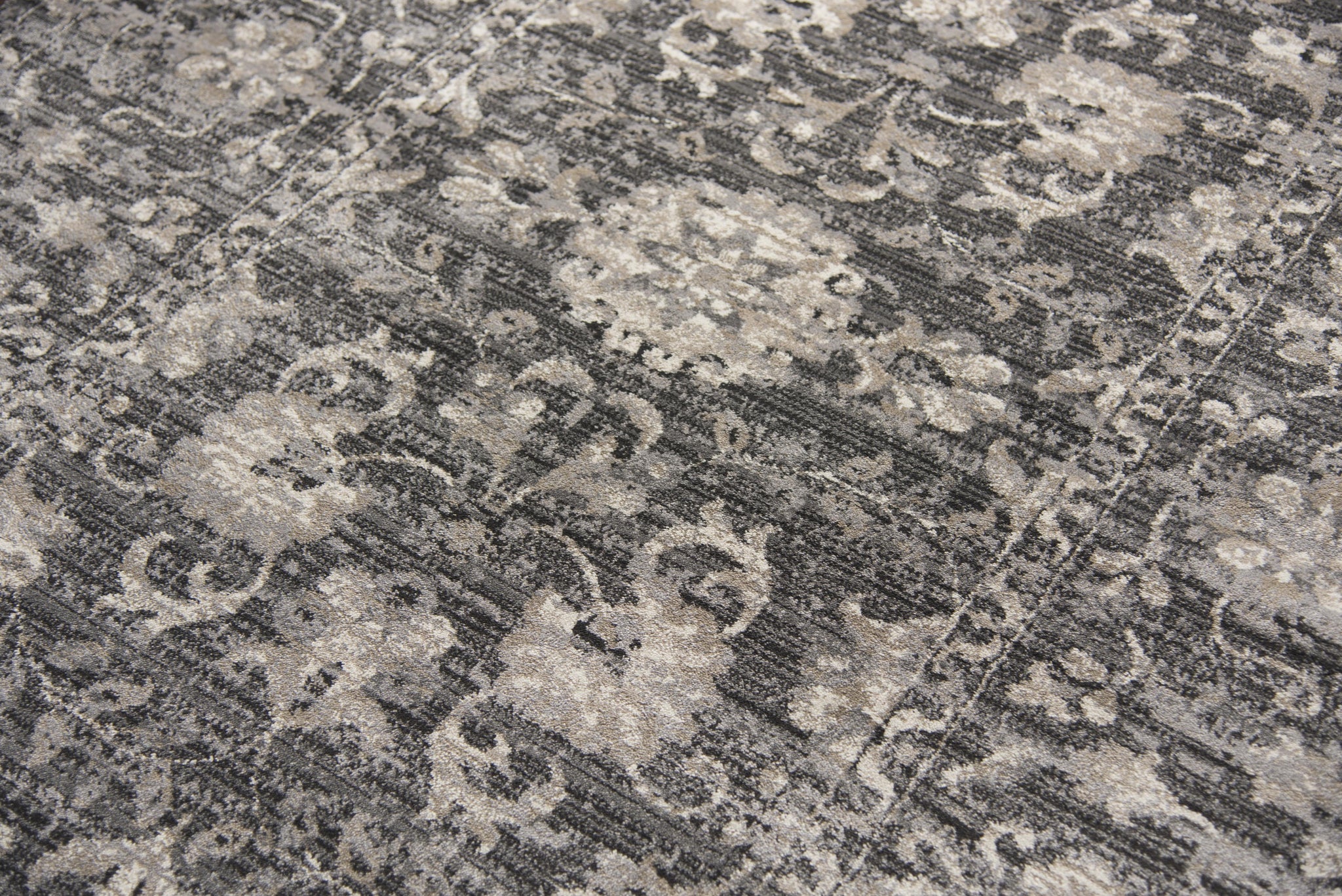 This striking Rizzy Home Panache Collection Persian area rug weaves a color palette of slate gray, black, tan and ivory hues giving it a versatile aesthetic that can complement a variety of interior design and home decor styles. Crafted from 100% heat set polypropylene-rizlon exclusive yarn, the durable construction can withstand high traffic areas and is easy to clean. The intricate floral distressed design adds timeless artistic elegance to this signature Mina-Khani design, creating a beautiful style anchor in any room in your home.