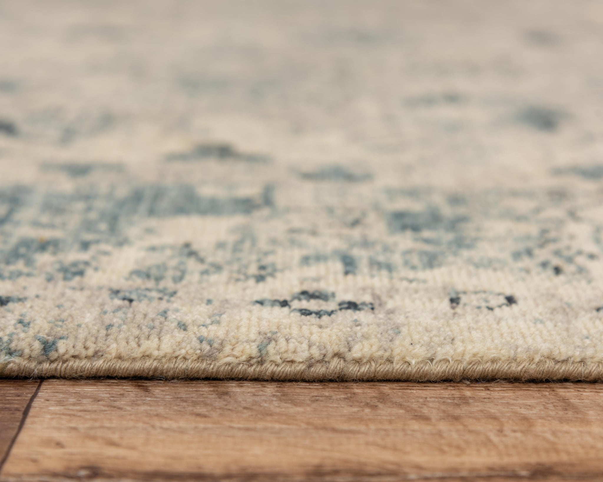 Made of 100-percent wool, the Rizzy Home Platinum Beige and Blue Classical Rug brings a feeling of elegance to your home. A beige background complements cool shades of blue in a classical design. The transitional style of this rug is decorated with a short fringe on two sides. Hand-washed and hand-sheared, this durable rug is the perfect finishing touch for your industrial style living room or dining room.