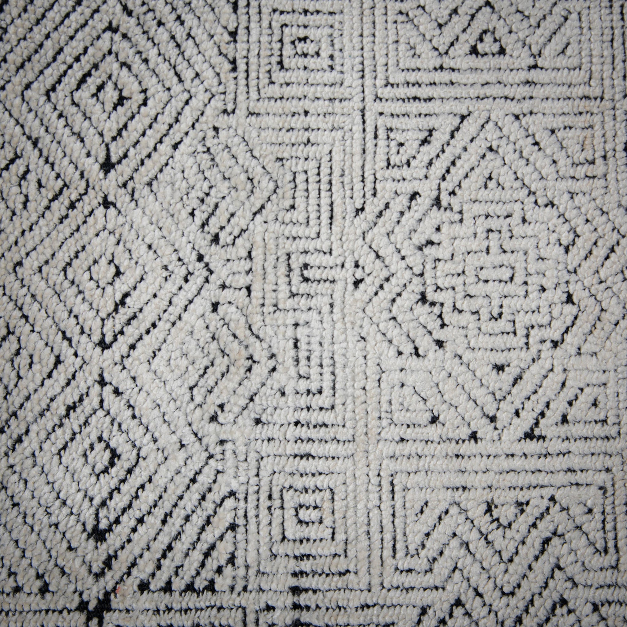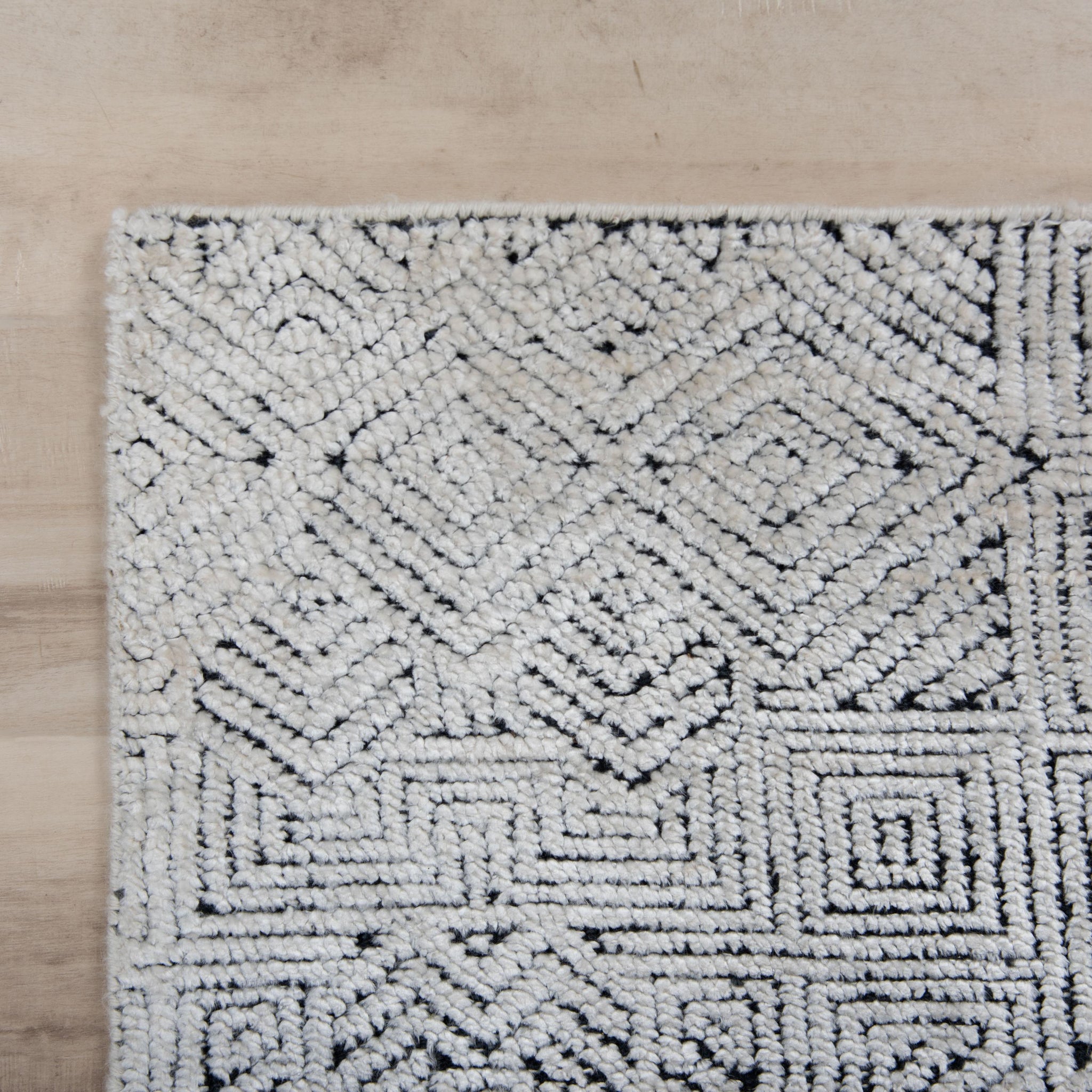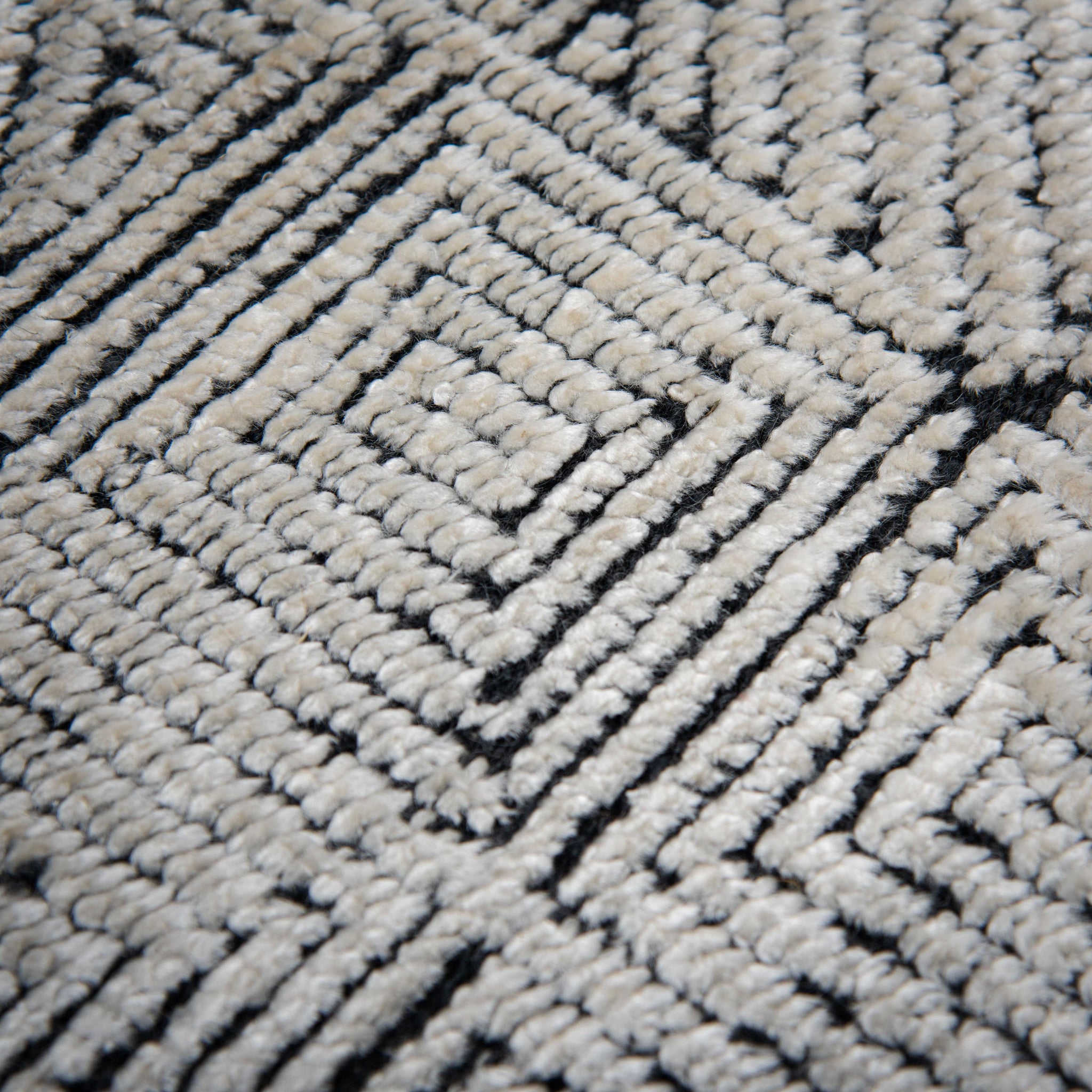 Give your home decor a focal point that refines style and texture with the Rizzy Home Cabana Collection. Hand-knotted from a luxurious wool and tencel blend, this rug features a sophisticated geometric pattern of concentric lines and shapes in a timeless color palette of black and white. The richly textured design creates rhythmic contours of dark and light, adding depth and dimension to any room. Crafted by skilled artisans in India using centuries-old techniques, every detail is a testament to exceptional craftsmanship. Perfect for home aesthetics ranging from urban lofts to modern contemporary, transform your decor into a striking visual statement.