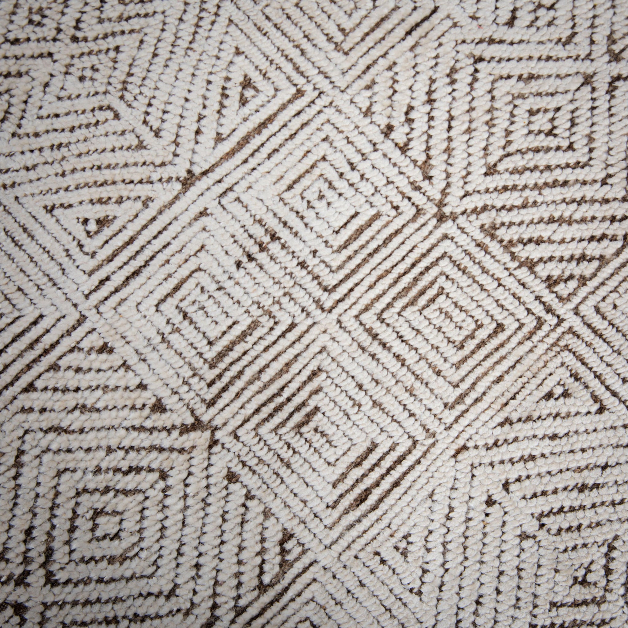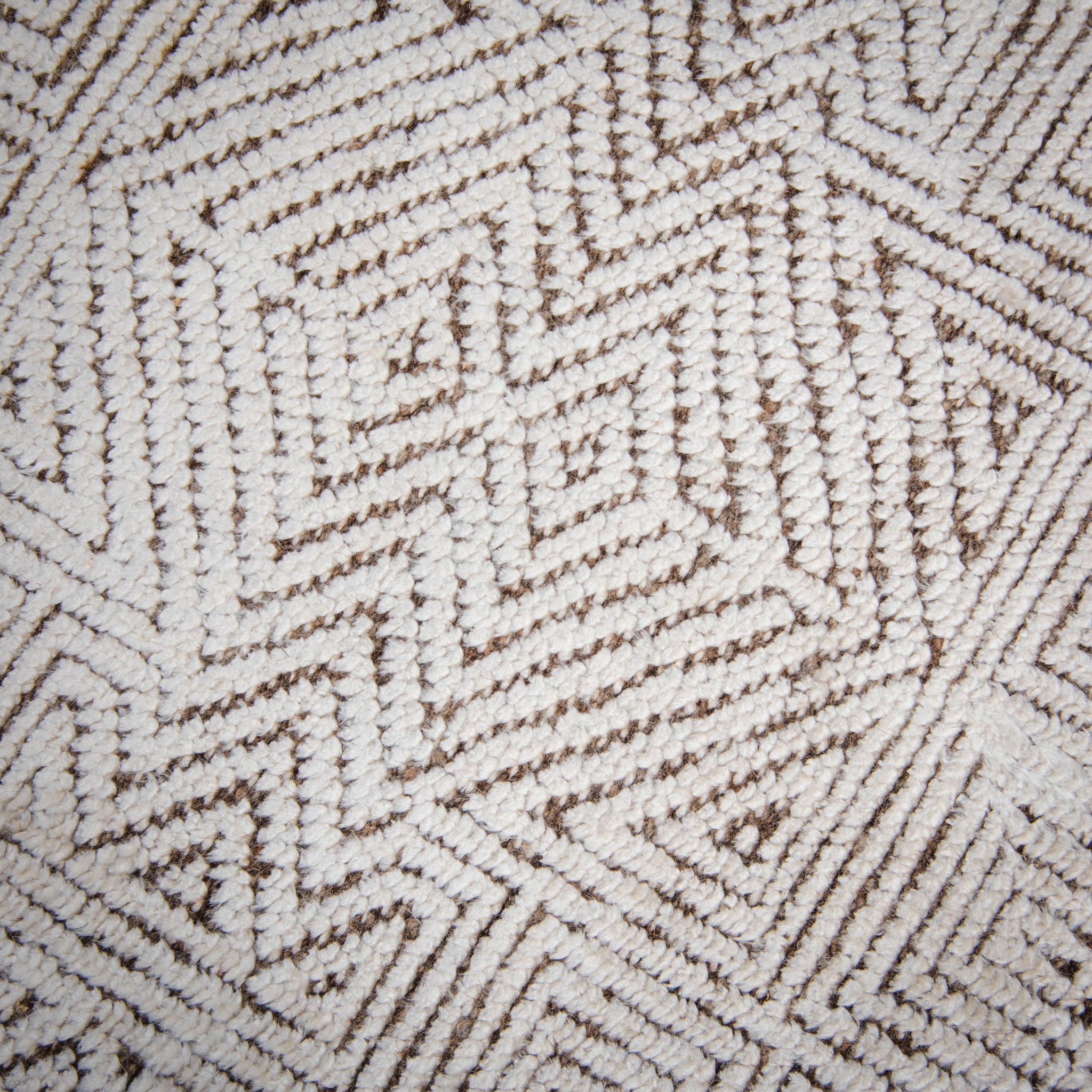 Give your home decor a focal point that refines style and texture with the Rizzy Home Cabana Collection. Hand-knotted from a luxurious wool and tencel blend, this rug features a sophisticated geometric pattern of concentric lines and shapes in a timeless color palette of black and white. The richly textured design creates rhythmic contours of dark and light, adding depth and dimension to any room. Crafted by skilled artisans in India using centuries-old techniques, every detail is a testament to exceptional craftsmanship. Perfect for home aesthetics ranging from urban lofts to modern contemporary, transform your decor into a striking visual statement.