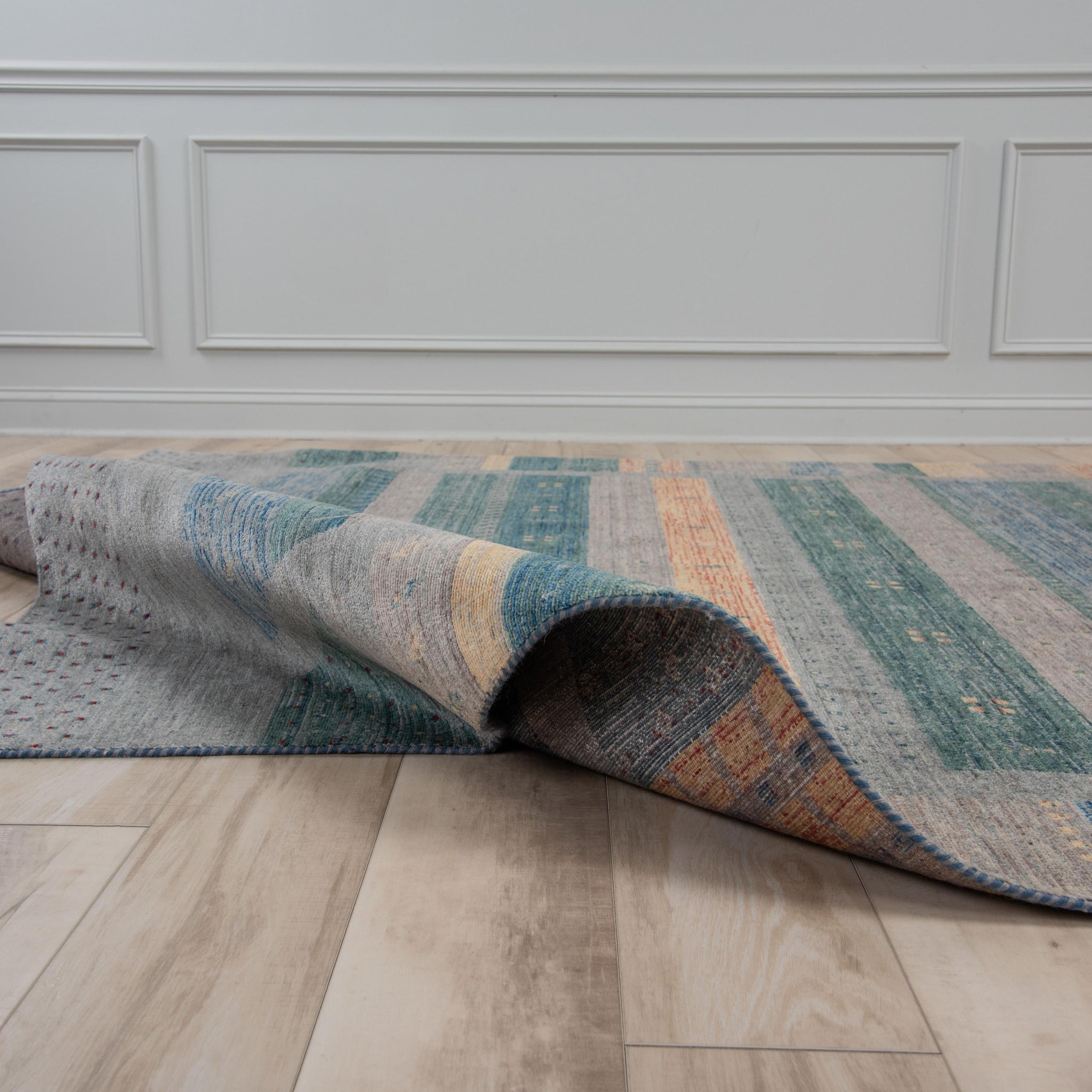 Our Spectrum Collection strikes a perfect balance between contemporary style and artisanal technique. Featuring bold, stripe-driven designs, each rug is machine-woven with premium New Zealand wool and dyed using natural herbal pigments. Every piece undergoes a meticulous hand-finishing process—washed, carved, and detailed by hand—for a richly textured look that brings warmth and depth to any room.