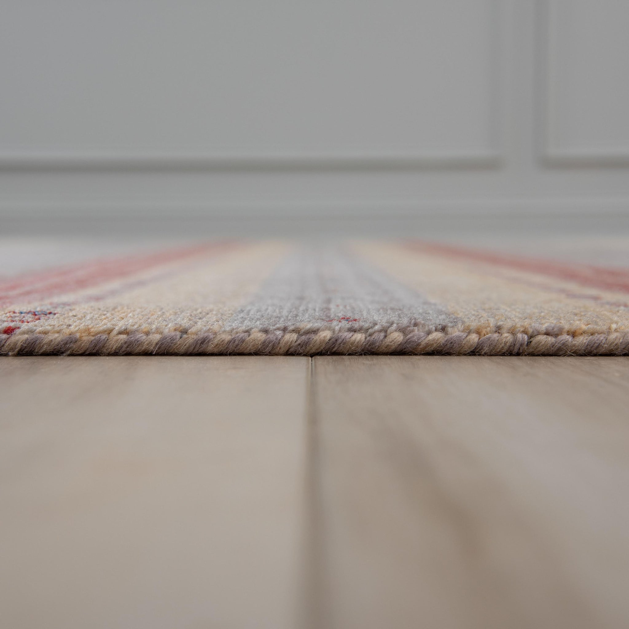 Bold design meets artisanal excellence in the Spectrum collection by Rizzy Home. These hybrid rugs showcase bold tribal stripe patterns inspired by southwestern, traditional, and vintage styles. Woven on precision looms using 100% proprietary New Zealand wool, each rug offers a soft feel and flexibility comparable to hand-knotted pieces. Naturally dyed with herbal pigments, the rugs feature a rich range of colors that bring warmth and depth to any space. Finished with hand-serged edges and detailed by hand through a careful process of washing and carving, the Spectrum Collection is where timeless design and refined heritage artistry fuse together.