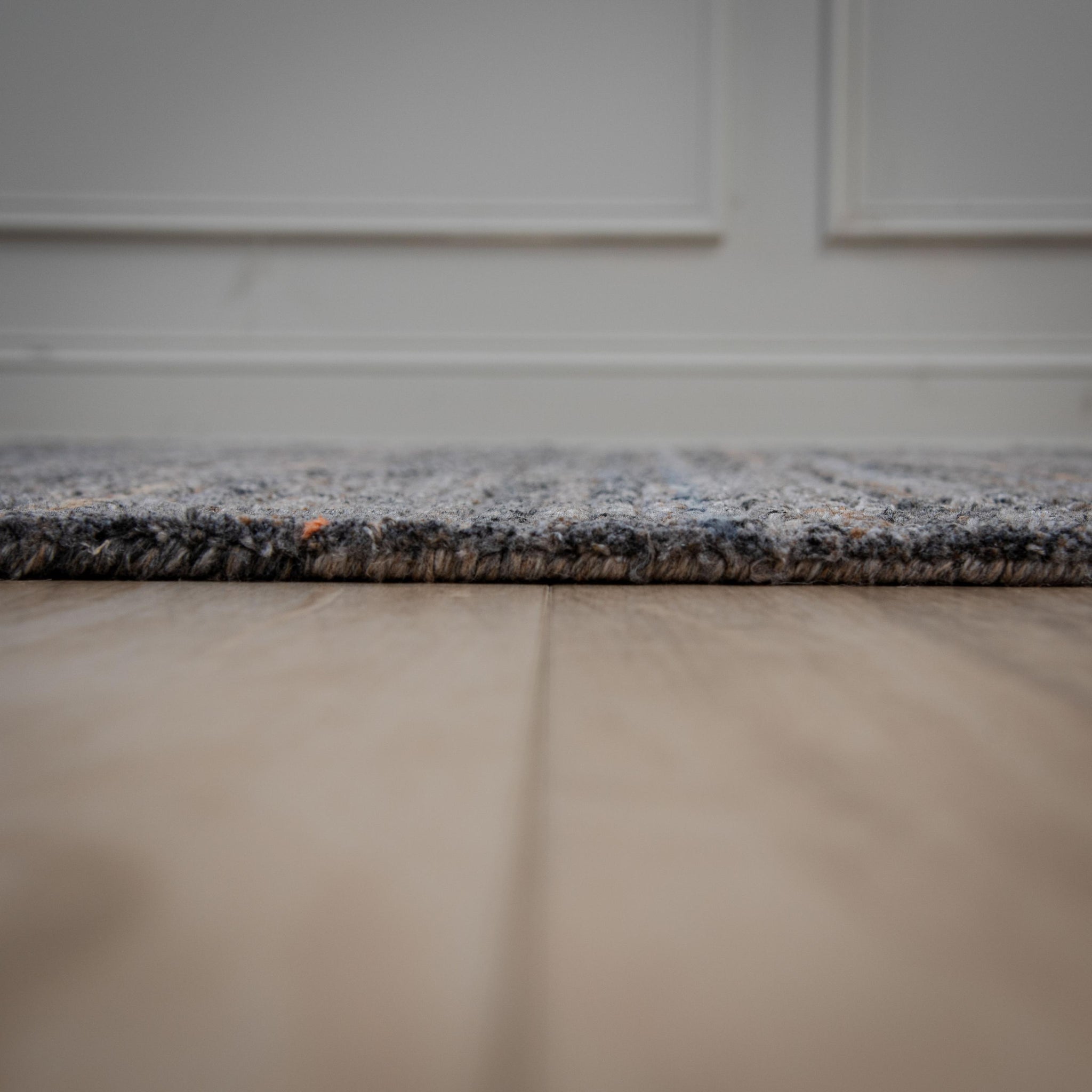 The Fusion Collection by Rizzy Home is the perfect blend of casual style and transitional elegance, elevating any space. Hand-tufted in India using a sustainable mix of recycled polyester and wool, this rug features a beautiful heathered pattern in charcoal with accents of dark blue, light Gray, and brown. The tone-on-tone design creates a sophisticated foundation for easy decorating, while subtle variations in color and texture add depth and visual interest. The unique combination of loop and cut pile adds a rich, textured look, enhancing the rug’s dimension and overall appeal. Hand-surged for a polished finish, this rug brings a modern, eco-conscious touch to any room with its exceptional craftsmanship and timeless design.
