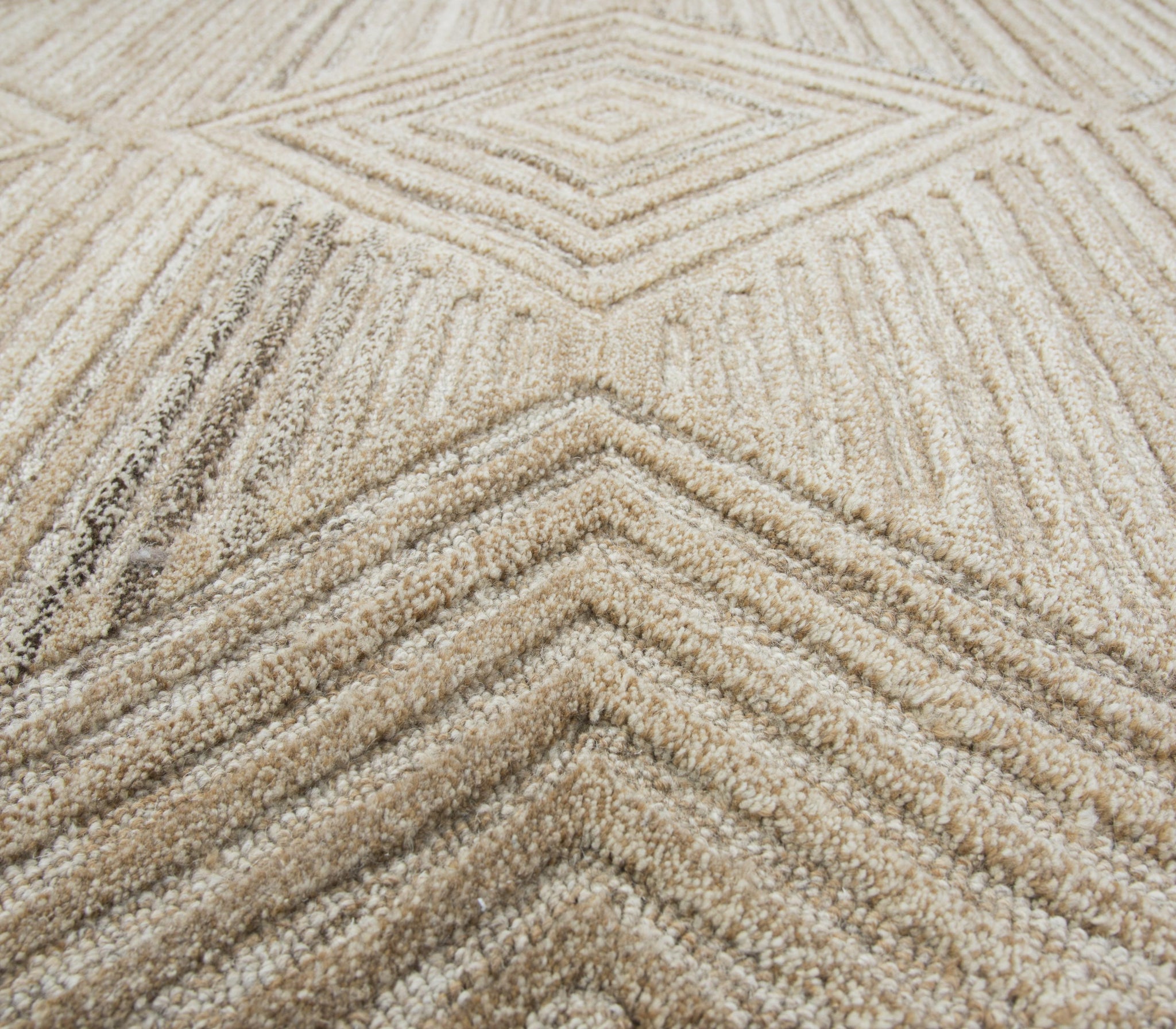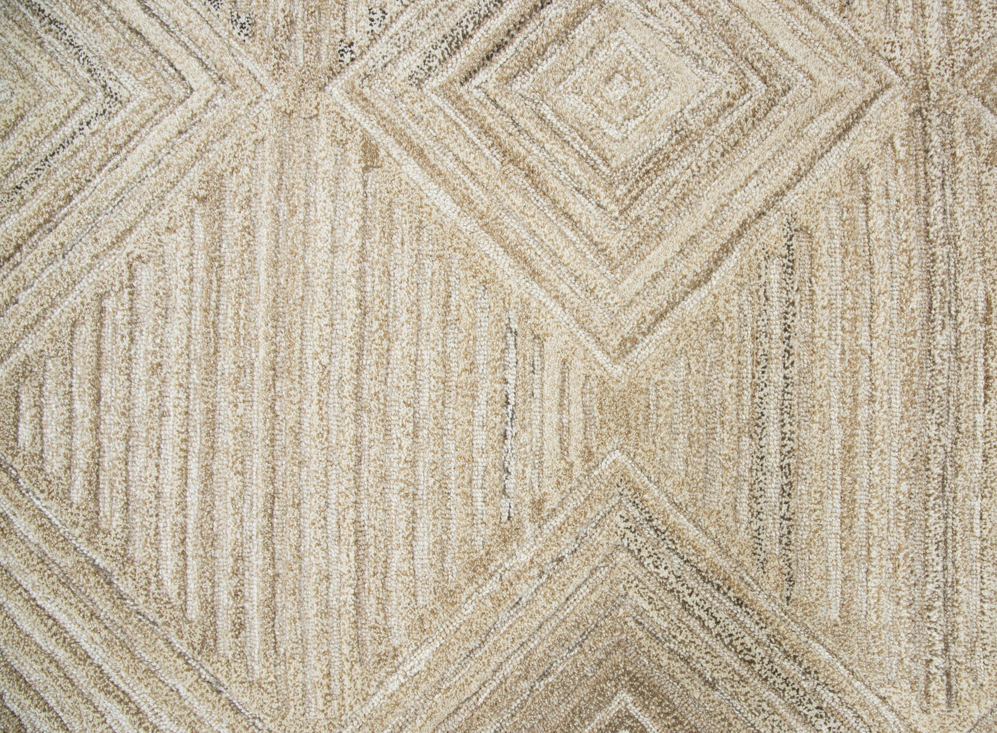 Enrich your home or office with the unsurpassed refinement of the Rizzy Home Suffolk Tan and Natural Hand-tufted Hand-surged Geometric Solid Rug. This artwork is good for the earth's environment. Hand-tufted in dense high and low pile from un-dyed, natural-colored, chemical-free wool to form the unique geometrical design in rich neutral tan and natural colors. The hand-surged edge is the perfect finish for the transitional modern style of this captivating piece.