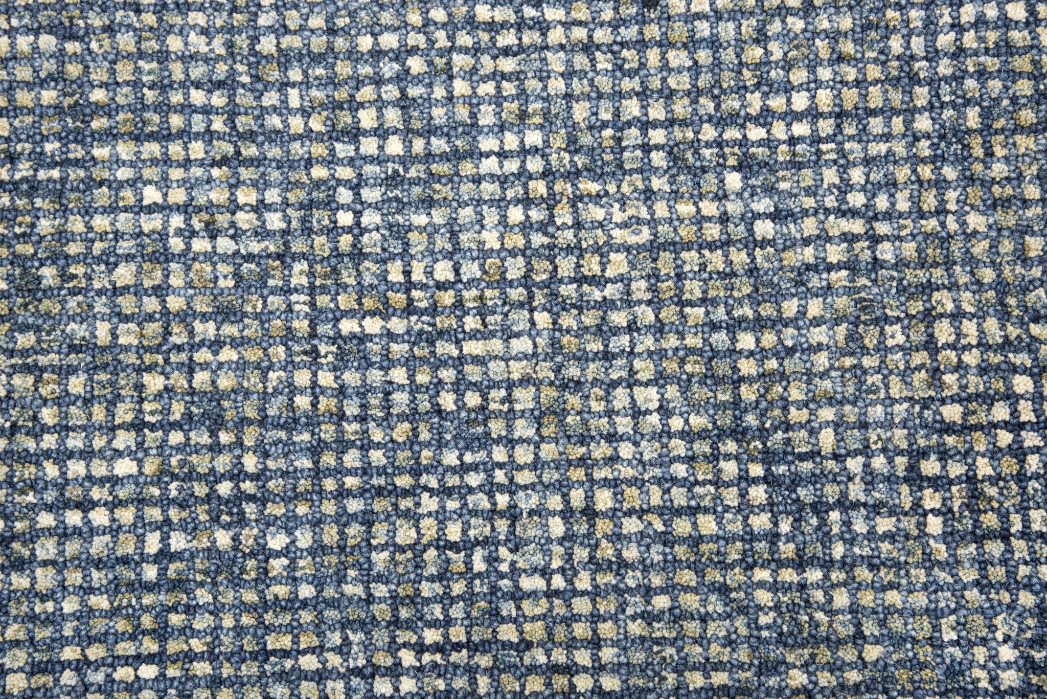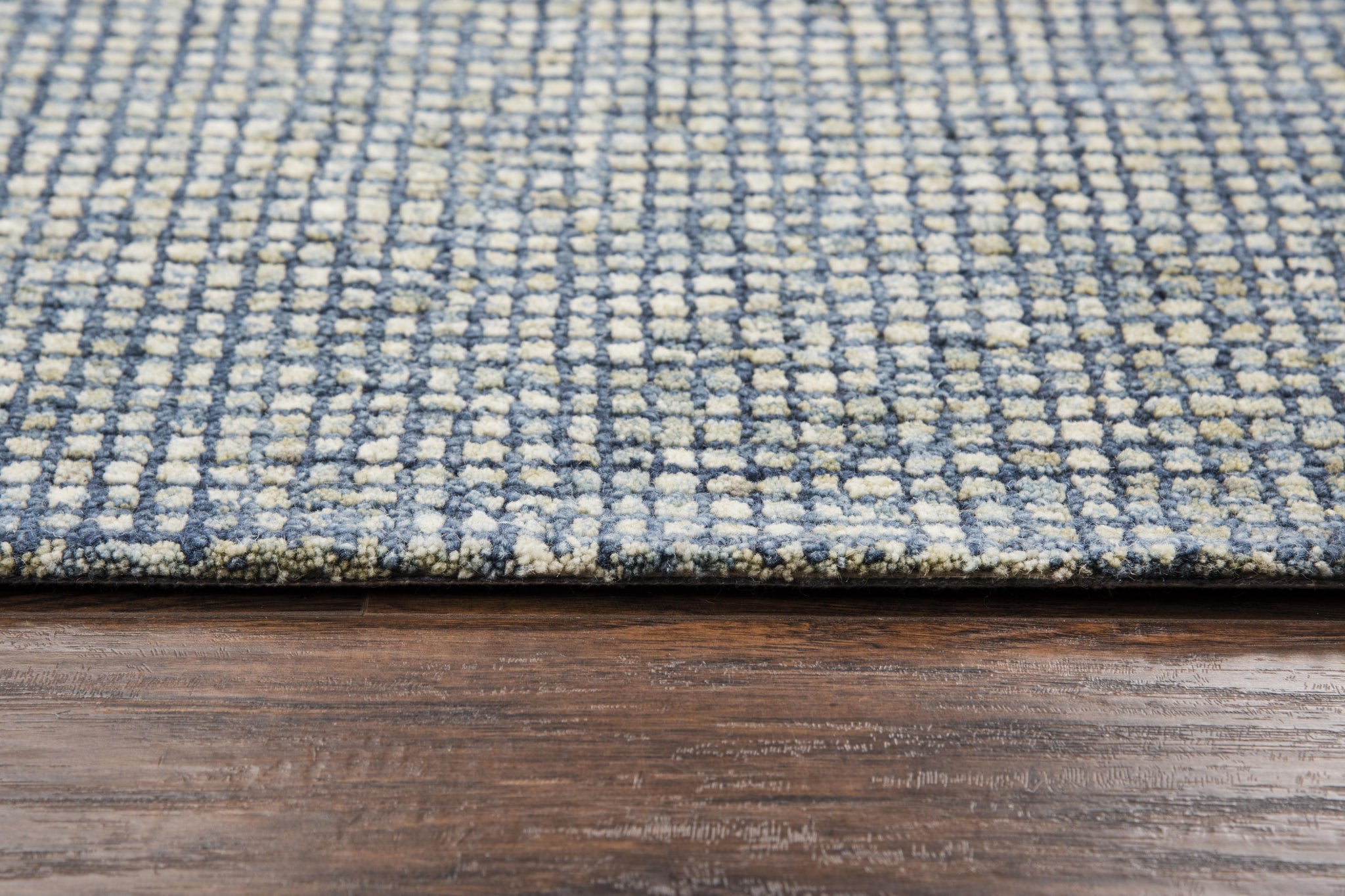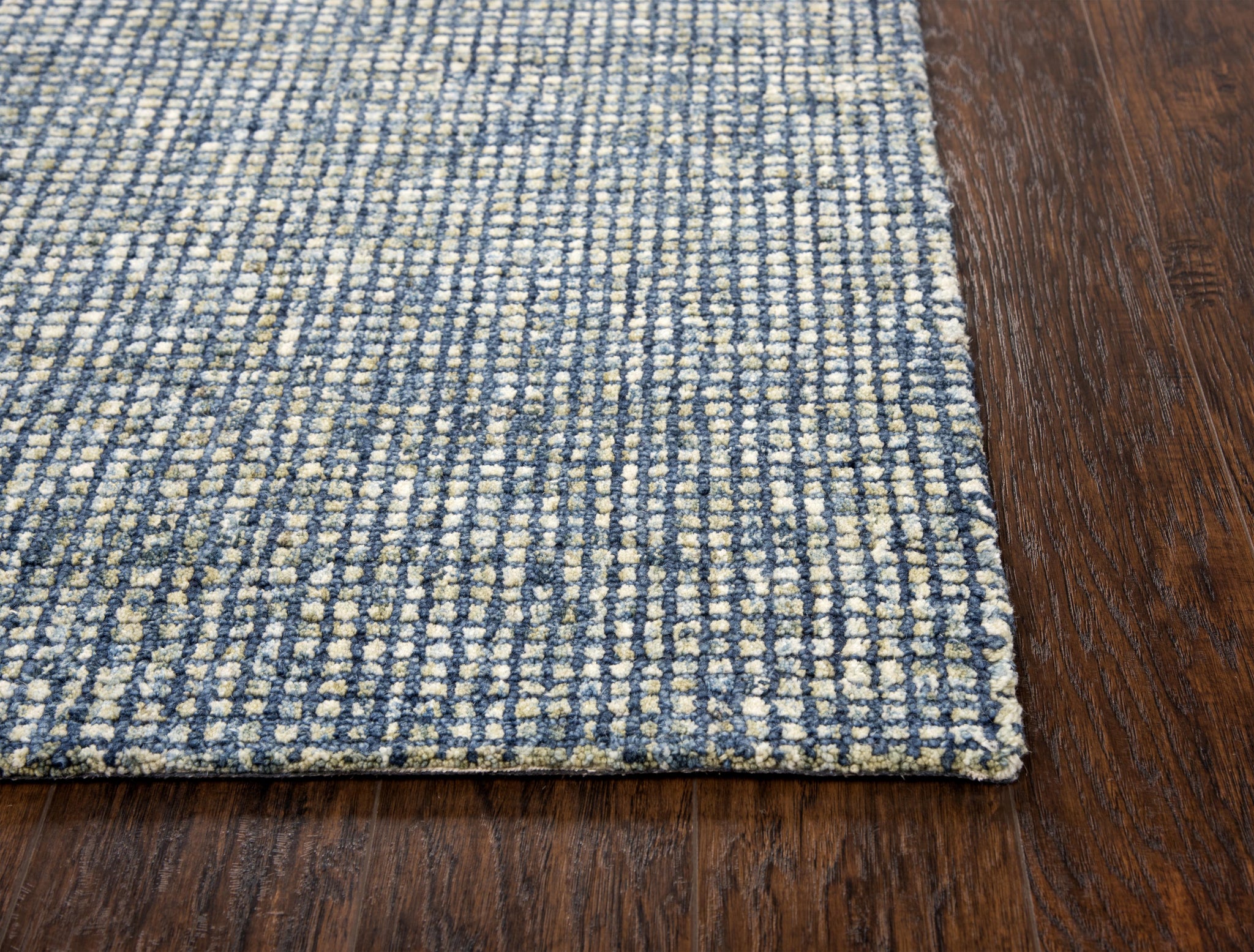 Bring a touch of European charm to your home with this distinct checked tweed Rizzy Home Talbot Rug. The deep blue horizontal and vertical line of the loop pile surround pockets of variegated beige cut loop to add textural appeal. This rug's ultra-dense construction of hand-tufted, lush 100-percent wool is soft to the touch and durable for long lasting beauty; plus the bound edges make cleaning a breeze.