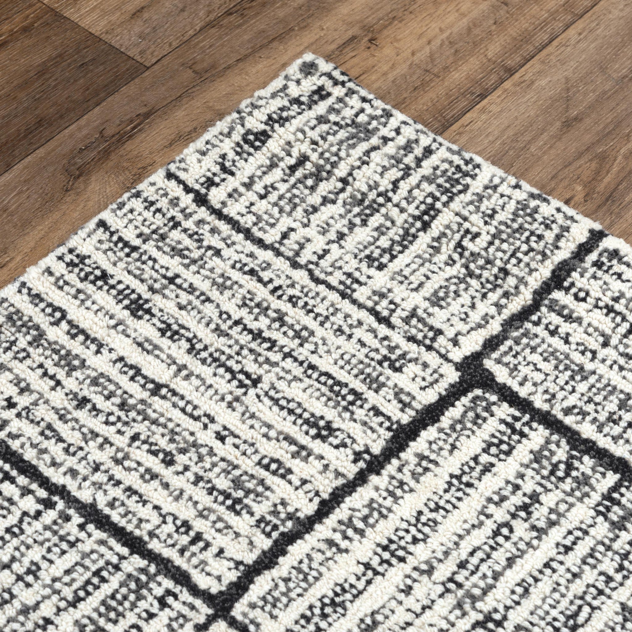 Our Taylor Collection by Rizzy Home is an excellent addition to your room. The craftsmanship is outstanding and the black and charcoal theme will allow you to add any range of color within the room. The 100-percent wool is hand-tufted and hand-surged added to an ultra dense construction which is then full loop, tip sheared in a unique deign sure to pleases.