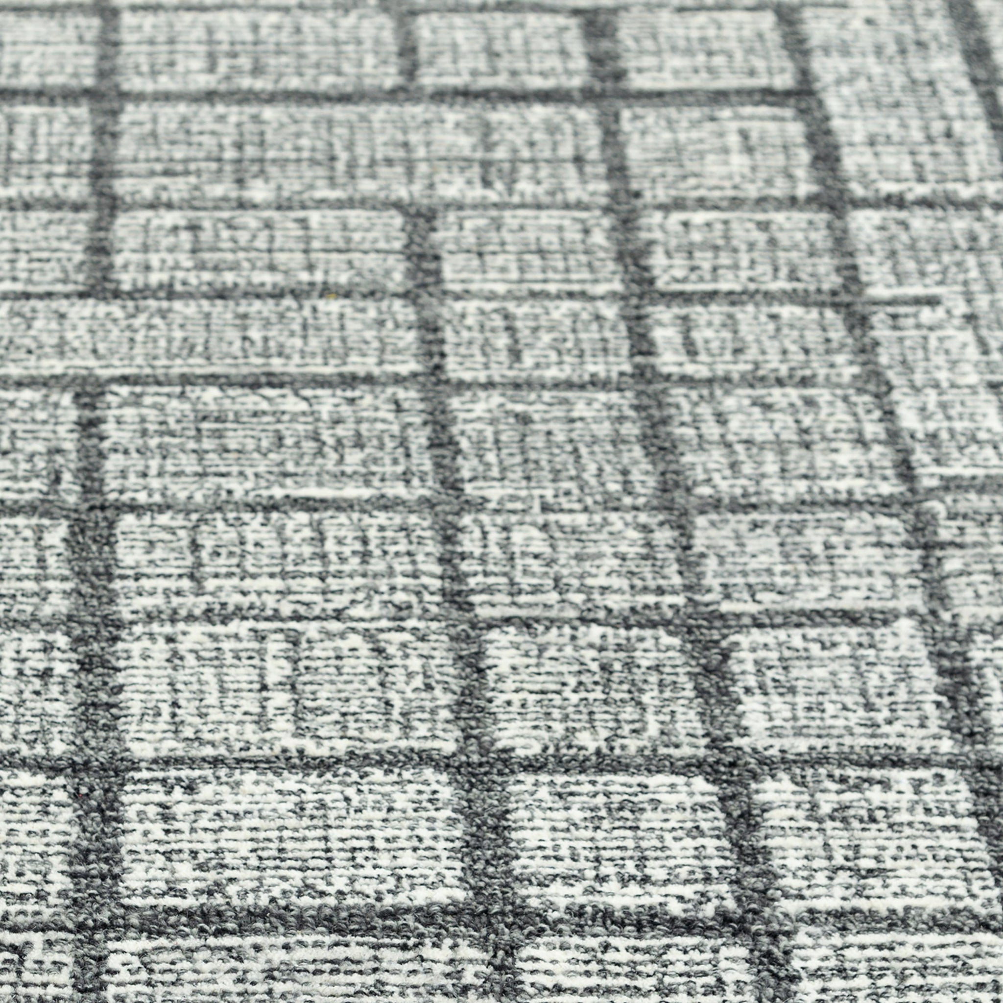 The bold charcoal lines act as mortar between the grey and ivory building blocks of this uniquely designed Rizzy Home Taylor Rug. Patterned for your contemporary or modern style décor, this piece is hand-tufted of 100-percent natural wool for softness and has an ultra-dense, cut pile that will cushion and support each step you take.