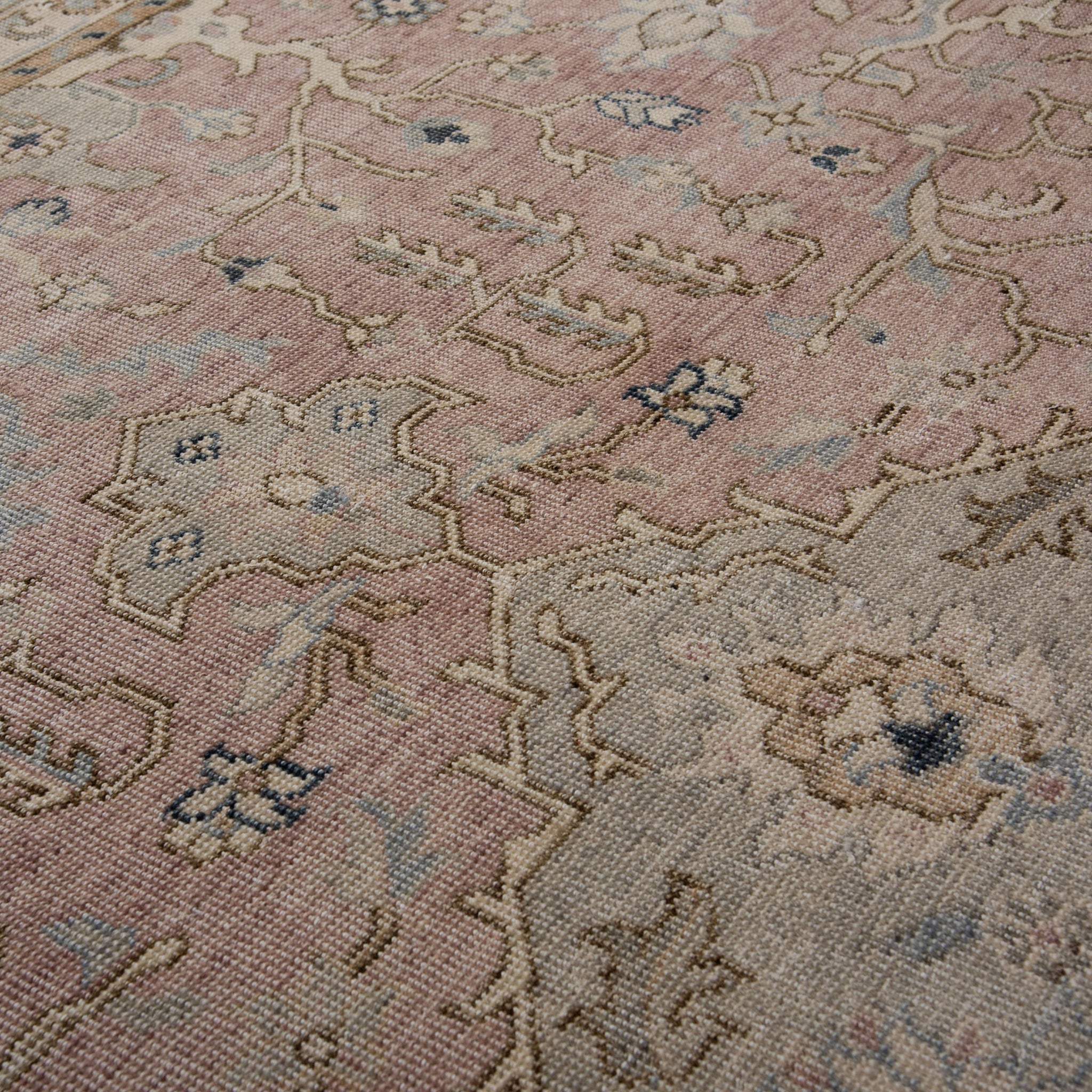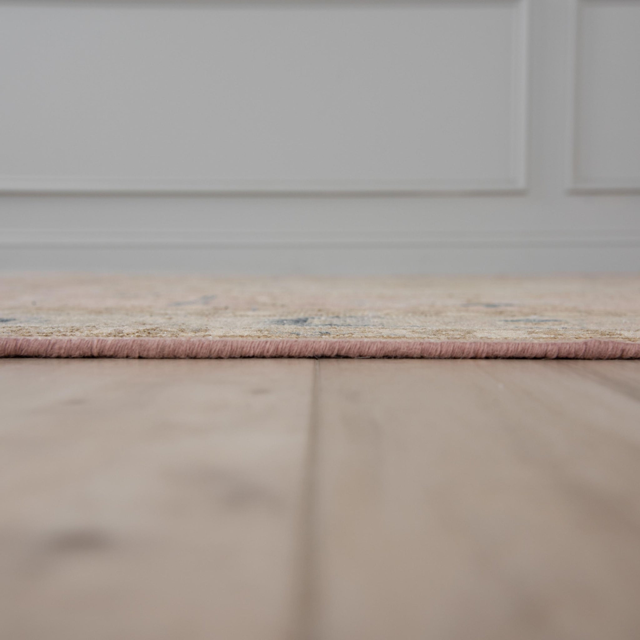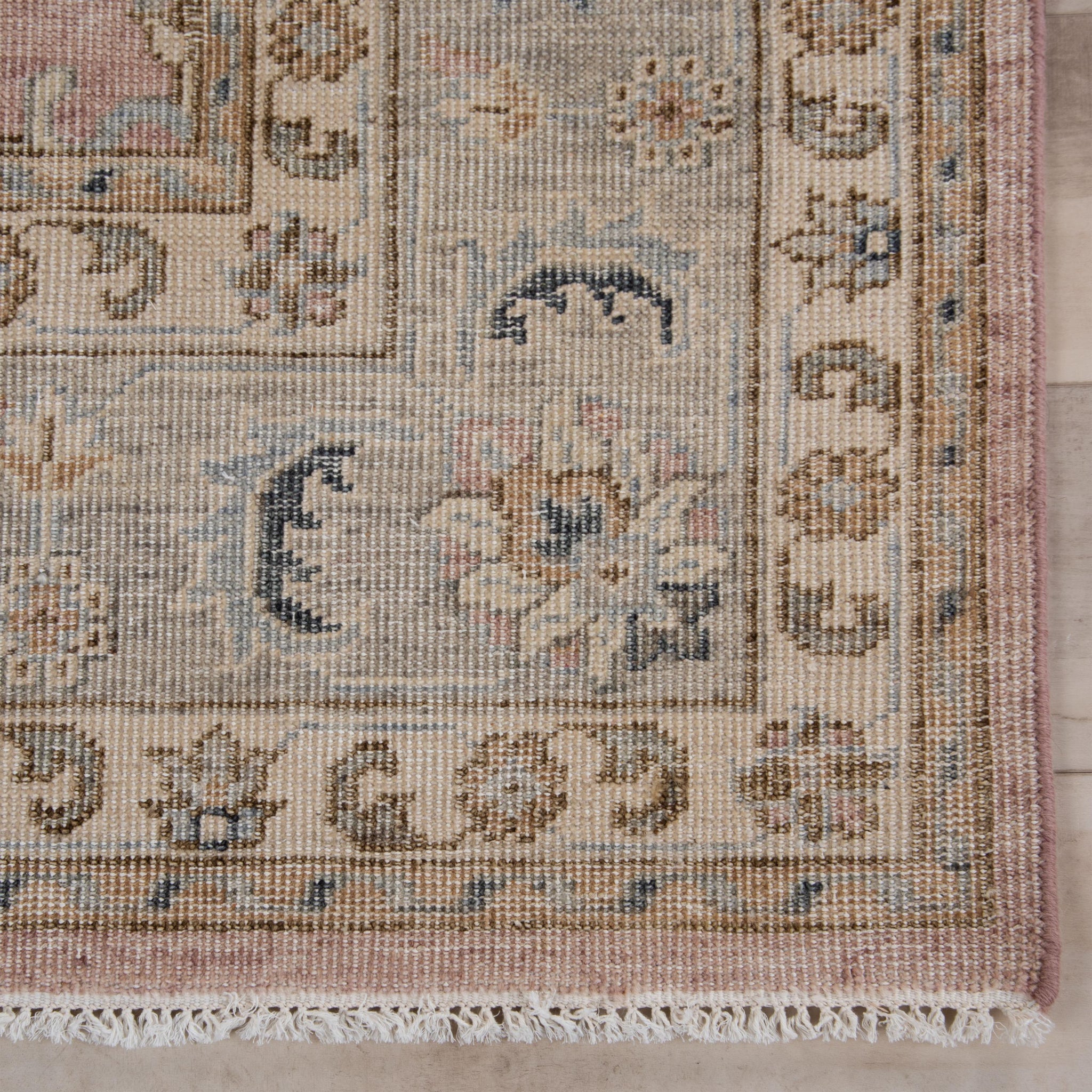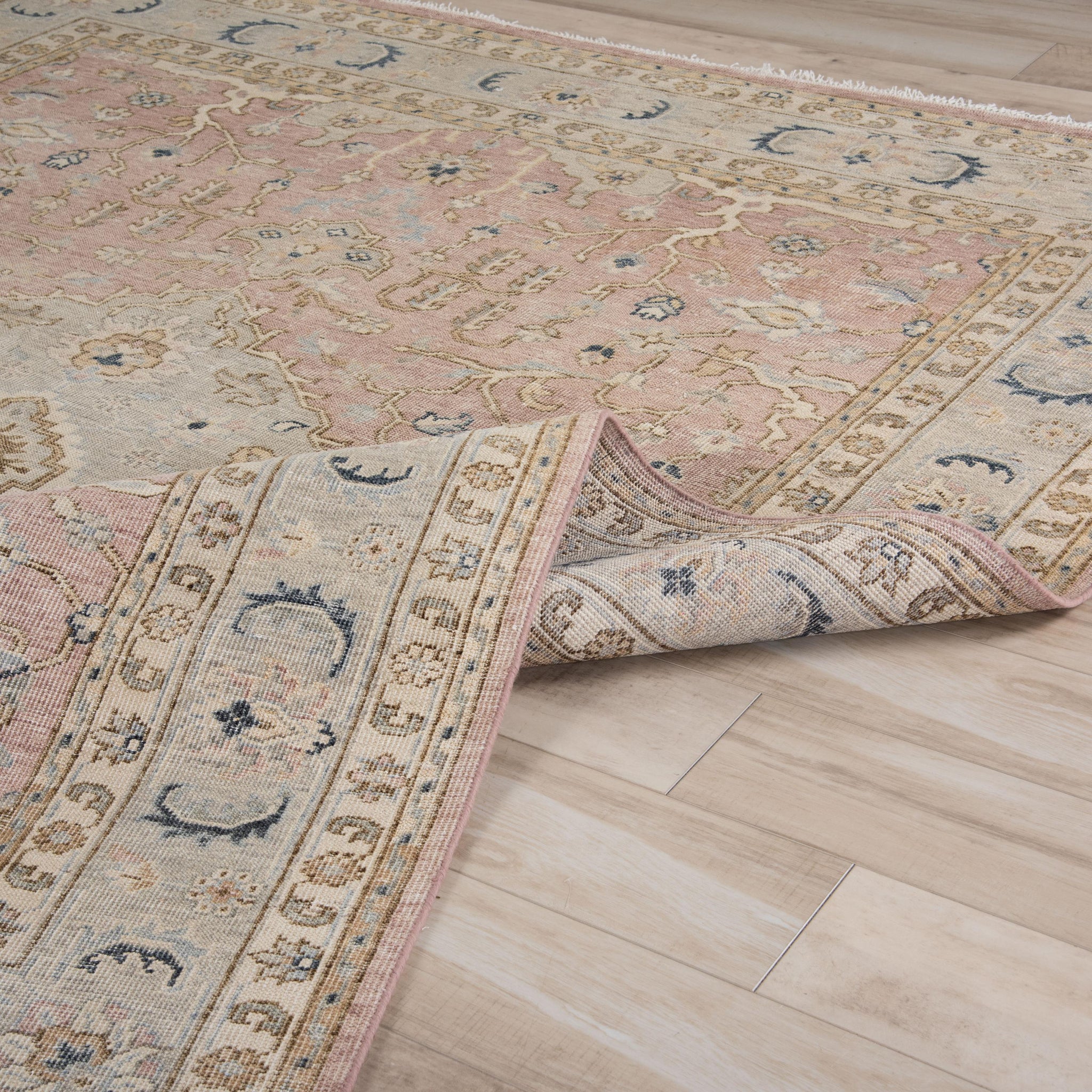 This gorgeous rug from Rizzy Home's refined Tuscany Collection is handcrafted with meticulous care and centuries-old construction techniques. This artisanal masterpiece exudes classic grace and artisanal charm. Hand-knotted to perfection with a cut pile, every fiber of this rug is 100% wool, ensuring both durability and luxurious softness underfoot. Its captivating color palette blends shades of soft pink, dusty rose, ivory, beige and dark blue to create a stunning symphony of colorful hues that will effortlessly complement any interior. Embracing a traditional yet transitional design, this rug boasts a mesmerizing medallion pattern, bordered with intricate details that add a touch of sophistication to any room. Each rug is hand-finished and hand surged in India, showcasing the dedication and expertise of skilled artisans.