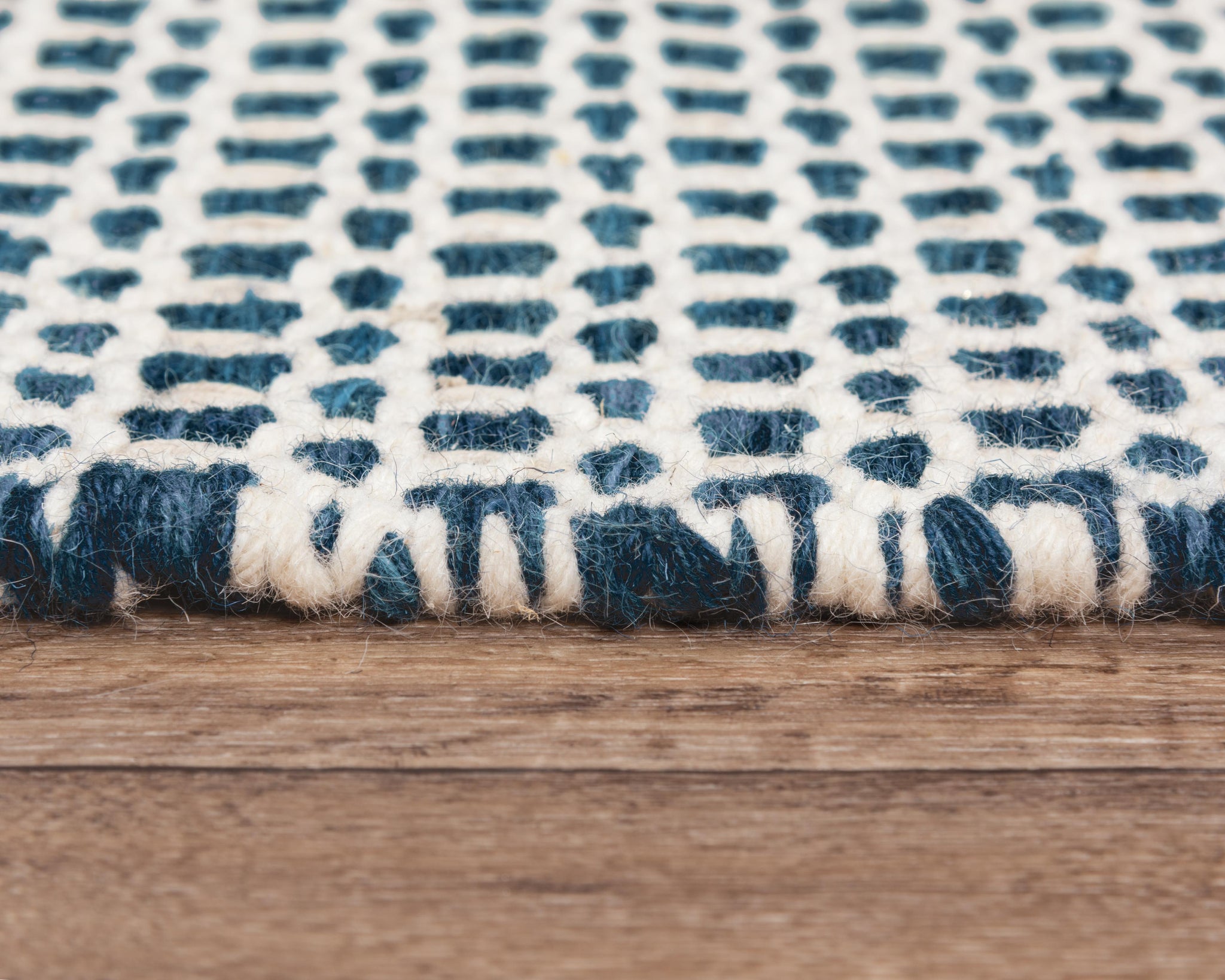Your casual, modern style is accentuated by this lovely, soft rug. Hand-woven and hand-finished in 100-percent wool with fringe on two edges, it brings a cozy, navy blue element to your room. The basket weave of the Windsor Blue and Ivory rug by Rizzy Home is created by skilled craftsmen for your enjoyment.