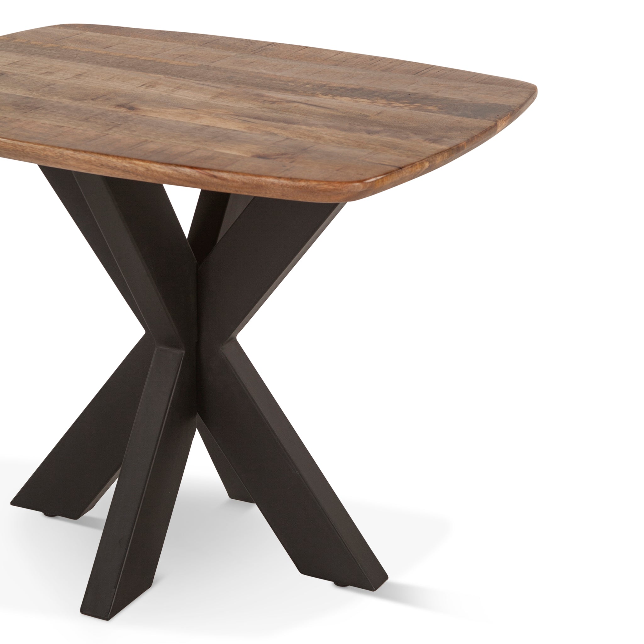 Gather around the sleek and stylish Santa Margherita Dining Table, where modern design meets natural beauty. Crafted from durable mango wood and supported by angled X-shaped iron legs, this side table seamlessly blends clean lines with industrial elegance, creating a dining experience that's both contemporary and inviting.