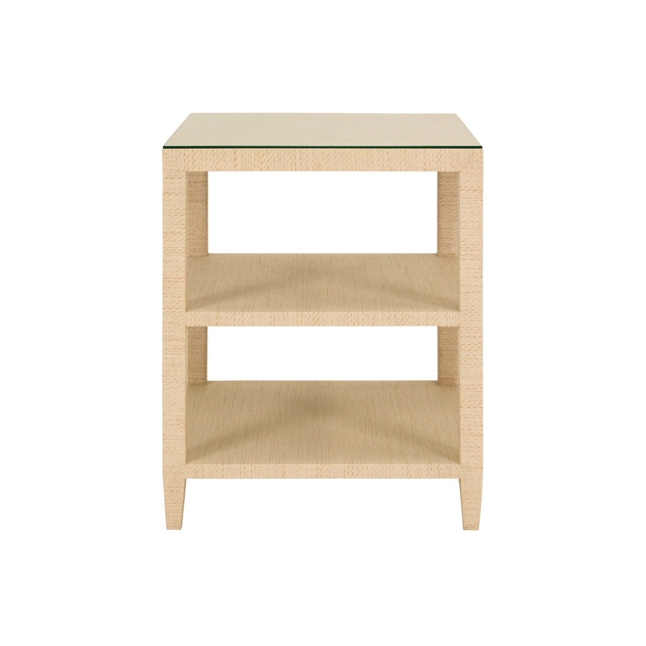 Amie Three Tier Square Side Table In Natural Grasscloth