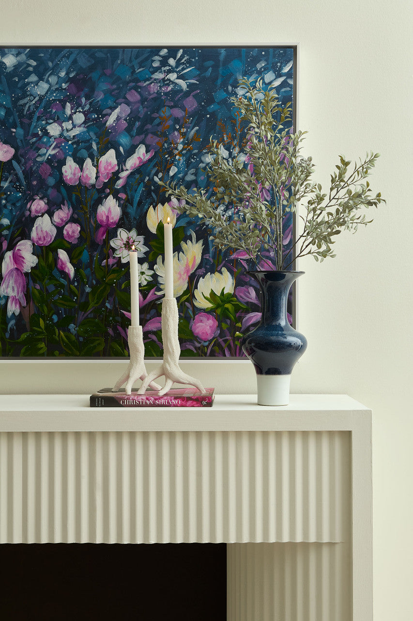 The Wildflower Framed Canvas captures the quiet magic of wildflowers at dusk. Set against a dreamy blue backdrop, hand-painted blooms dance across the silk canvas in soft, romantic hues. It evokes the stillness of evening meadows—so serene, you can almost see the fireflies.