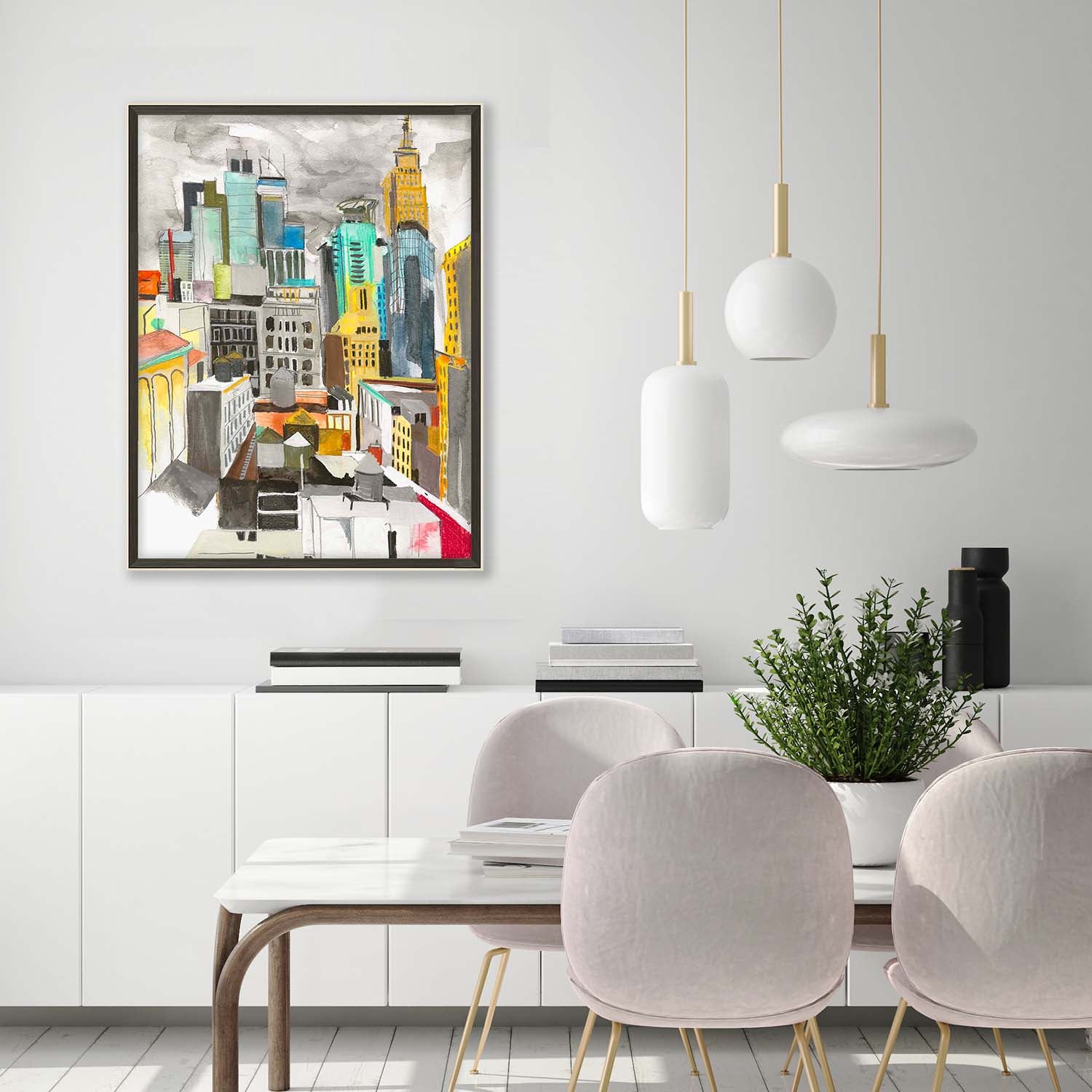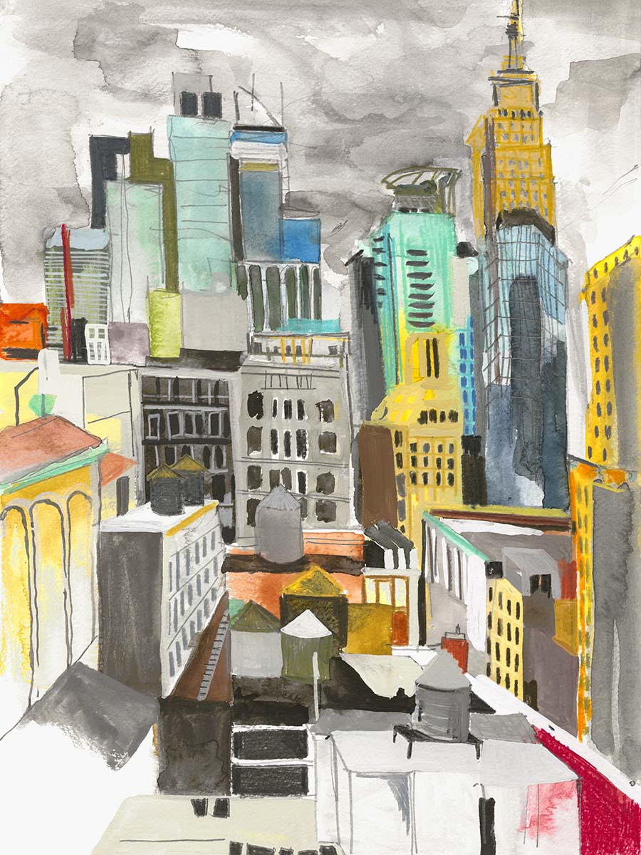 Using a muted, earthy palette, Alison Jones captures a well-known NYC skyline.