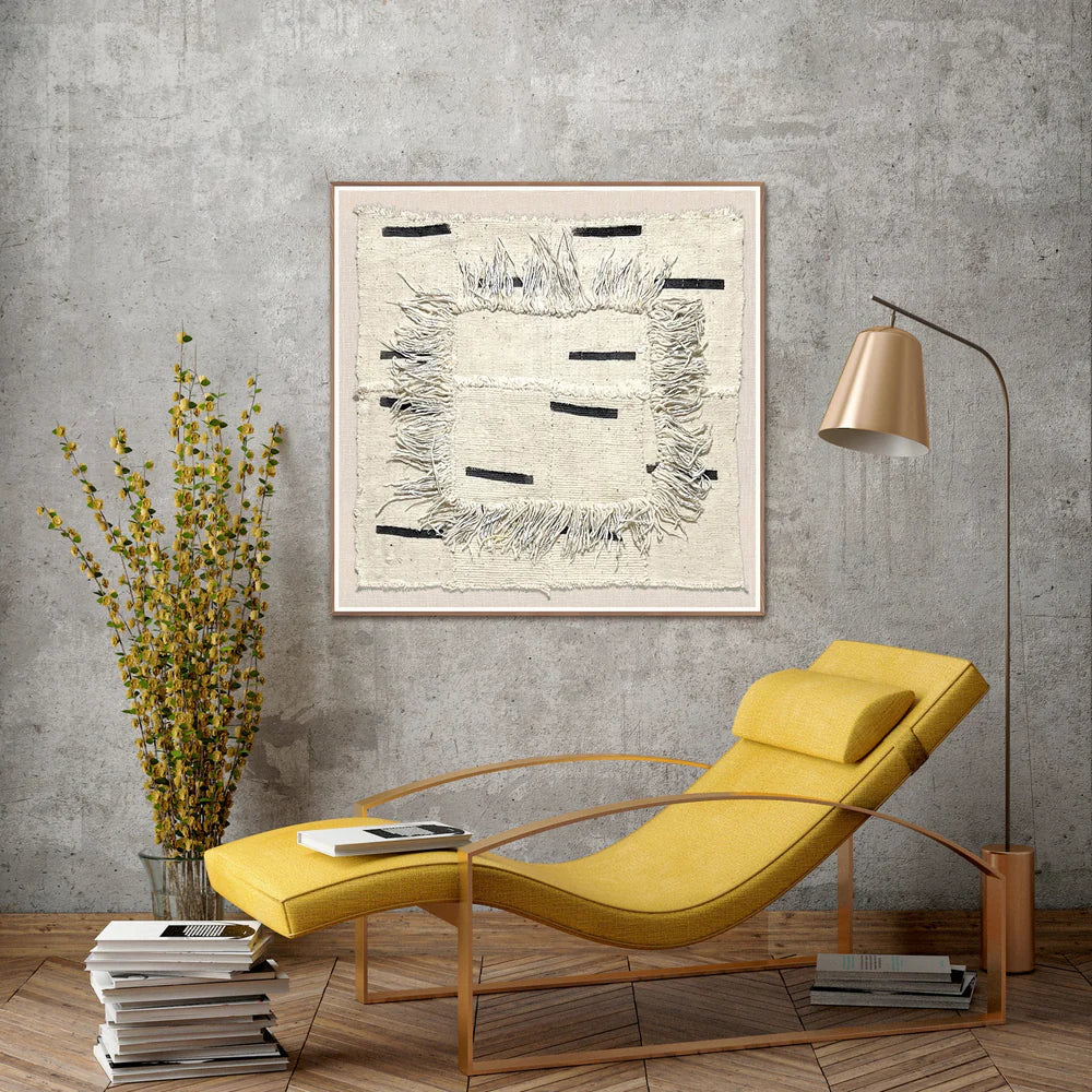 Handmade to order, Catherine Lisle's textile pieces are made from African mud clothes sourced from Women's cooperatives in Africa are then cut, hand stitched, leafed and embroidered with golden thread.
