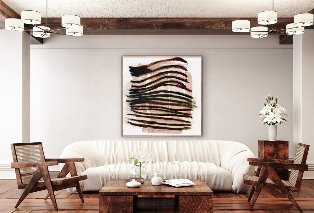 "Many Marks" is a subtle abstraction created with a series of wavy, dark brushstrokes. The piece has a dynamic, textural quality, as if it were a quick study of movement and shadow.