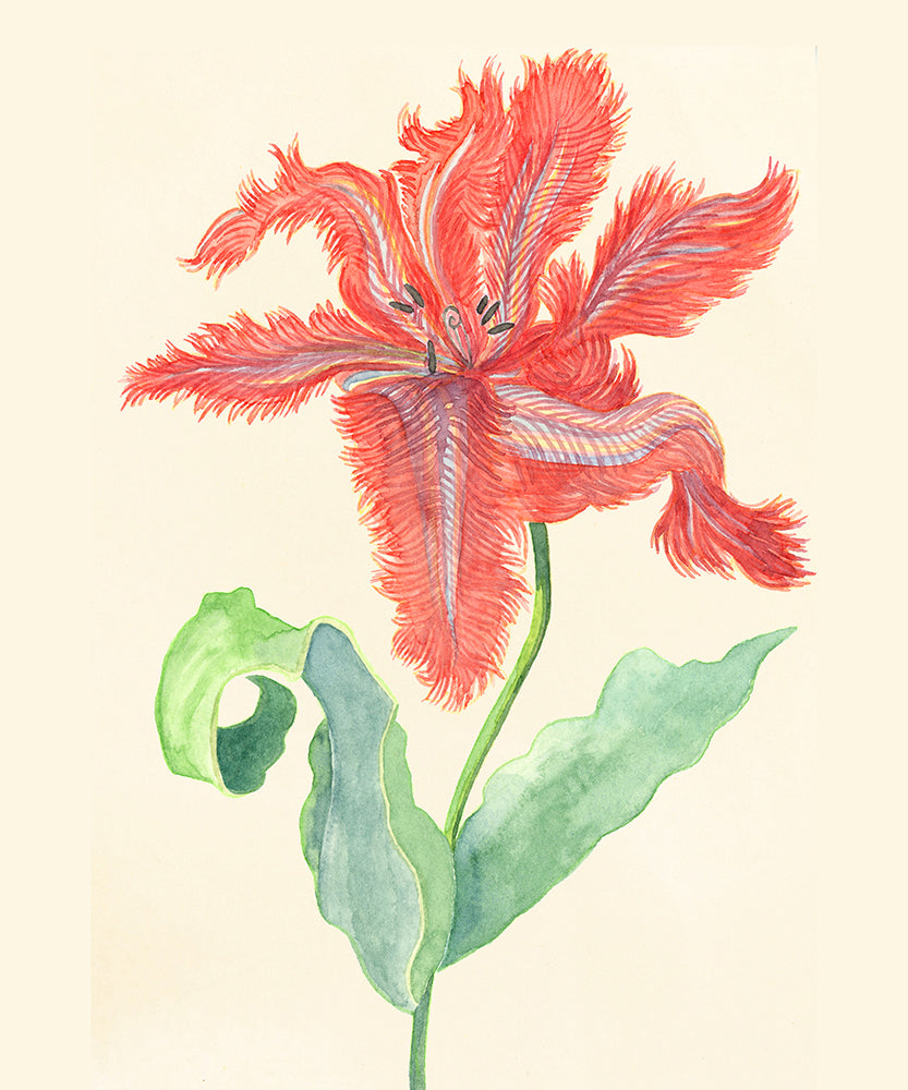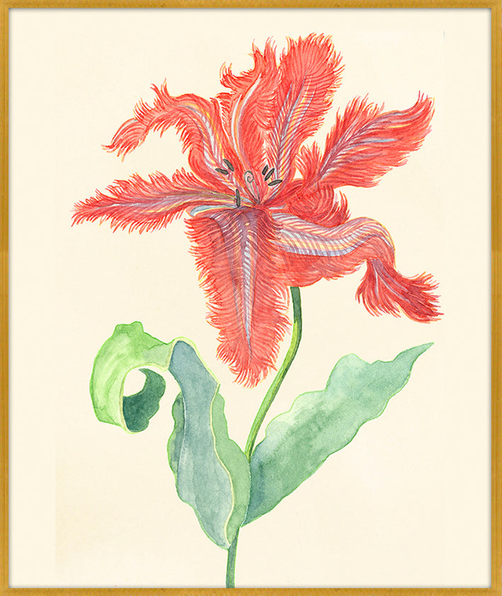 Valerie Suter's series of delicate botanical watercolors capture the timeless elegance of flowers. The colors are often muted, with subtle shifts in tone and shade, giving the impression of a natural form captured in a moment of quiet grace.