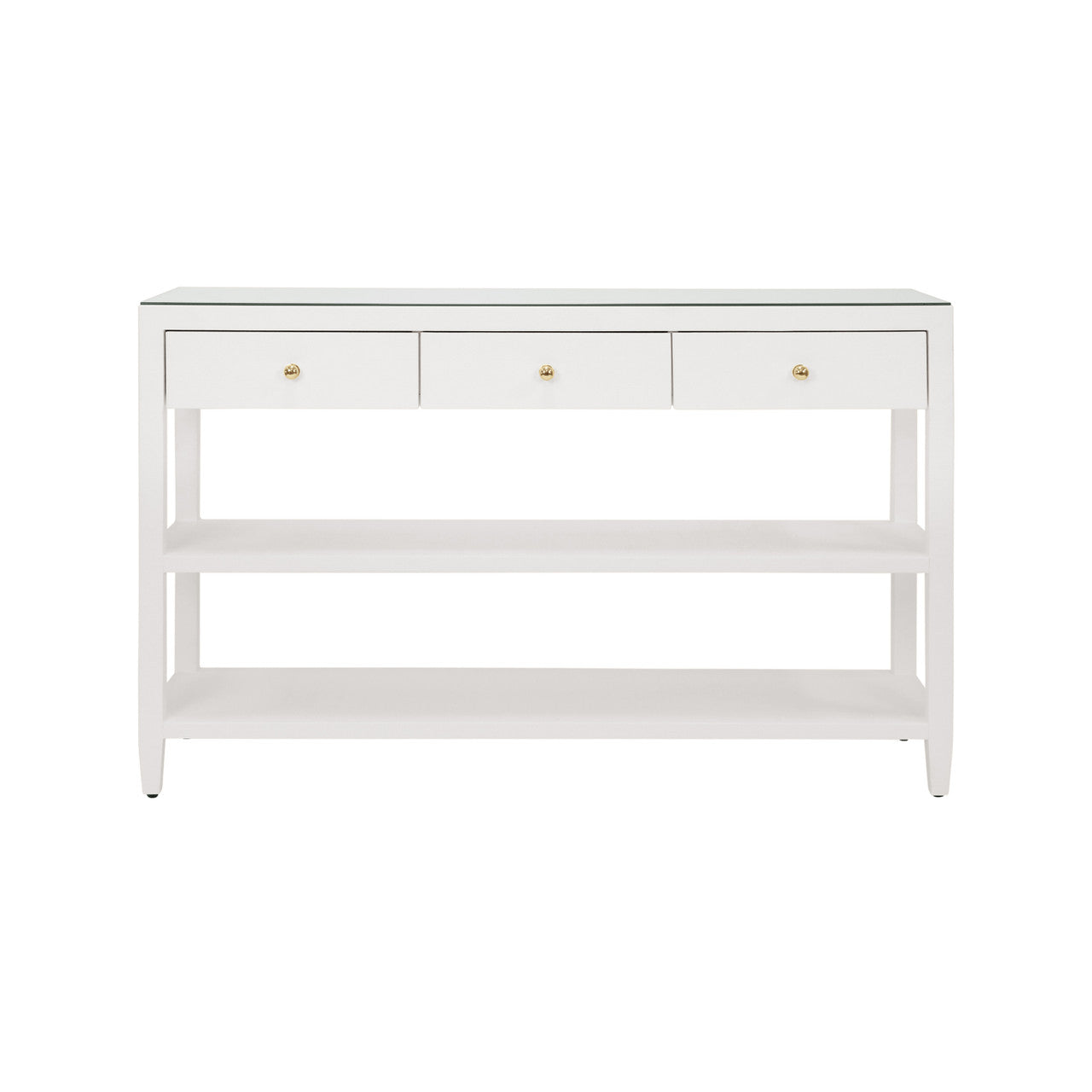 Briar Three Drawer Console -White Textured Linen With Polished Brass Knobs