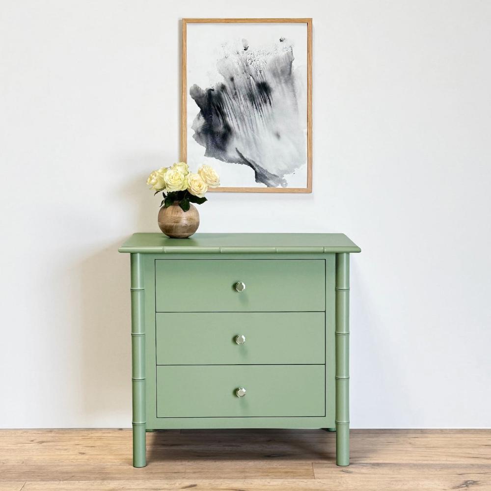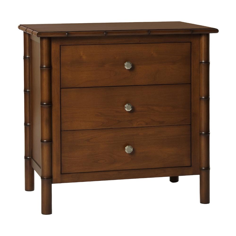 This contemporary nightstand with its minimal design, works with most any bedroom collection. Its faux bamboo legs and attention to detail make it every bit elegant and the three drawers make it super functional.