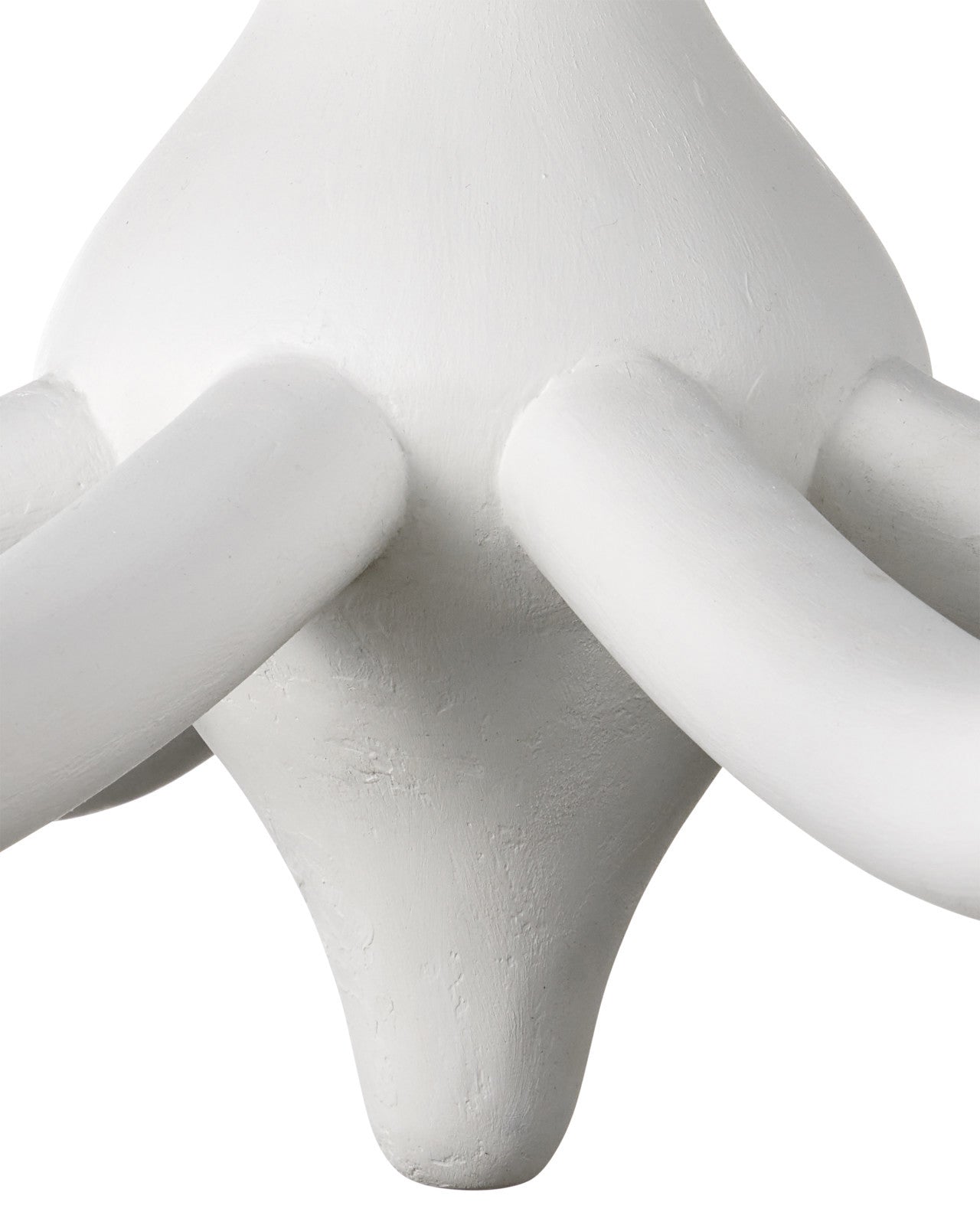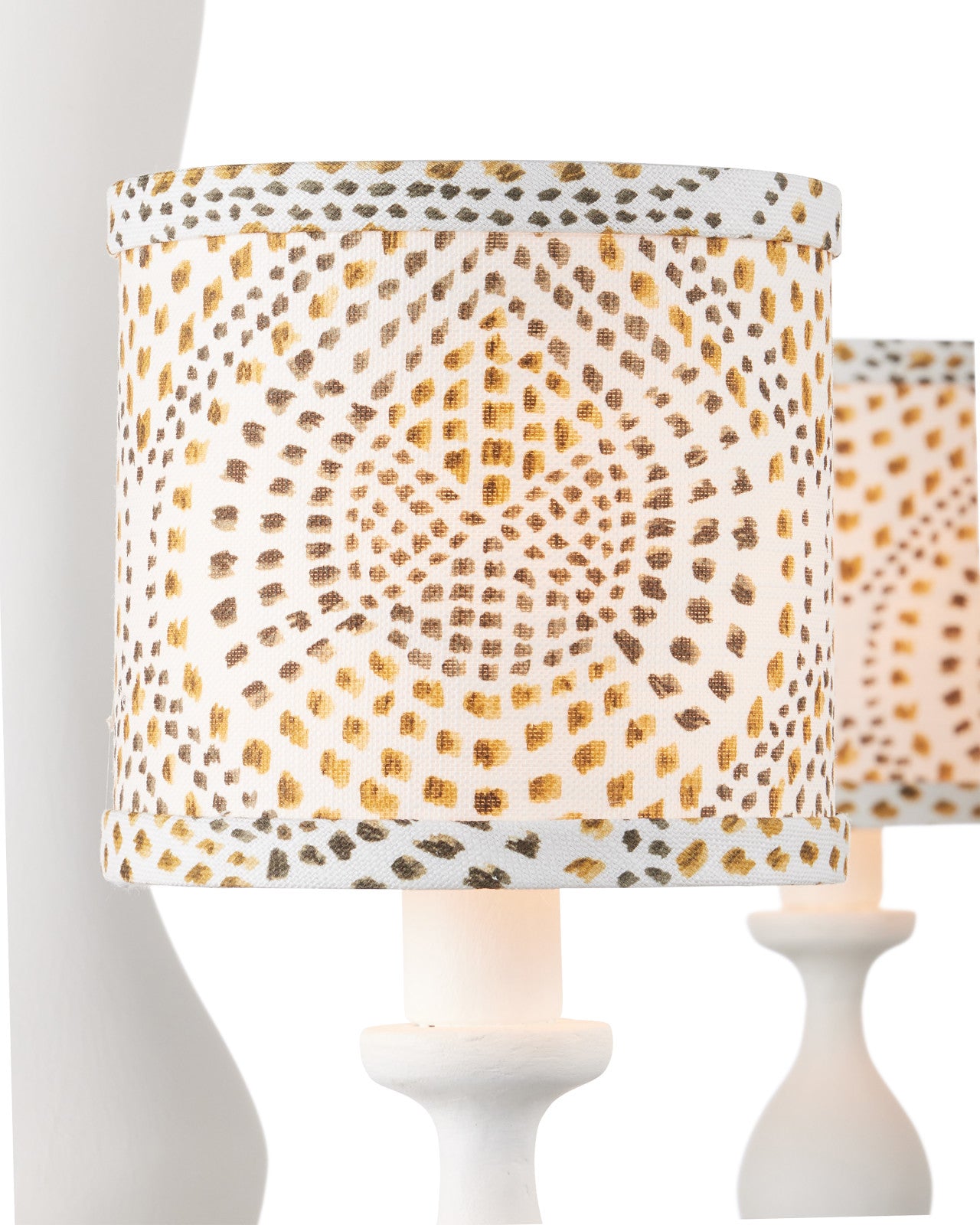 The Ludwig White Chandelier is crafted from wrought iron in a gesso white finish, its surface shaped to mimic the look of turned wood. The flowing frame recalls a classic arm chandelier but with a more playful, contemporary twist. With its crisp white finish and sculptural silhouette, it adds a fresh, eye-catching element to a space. The fixture has eight lights and is dimmable.