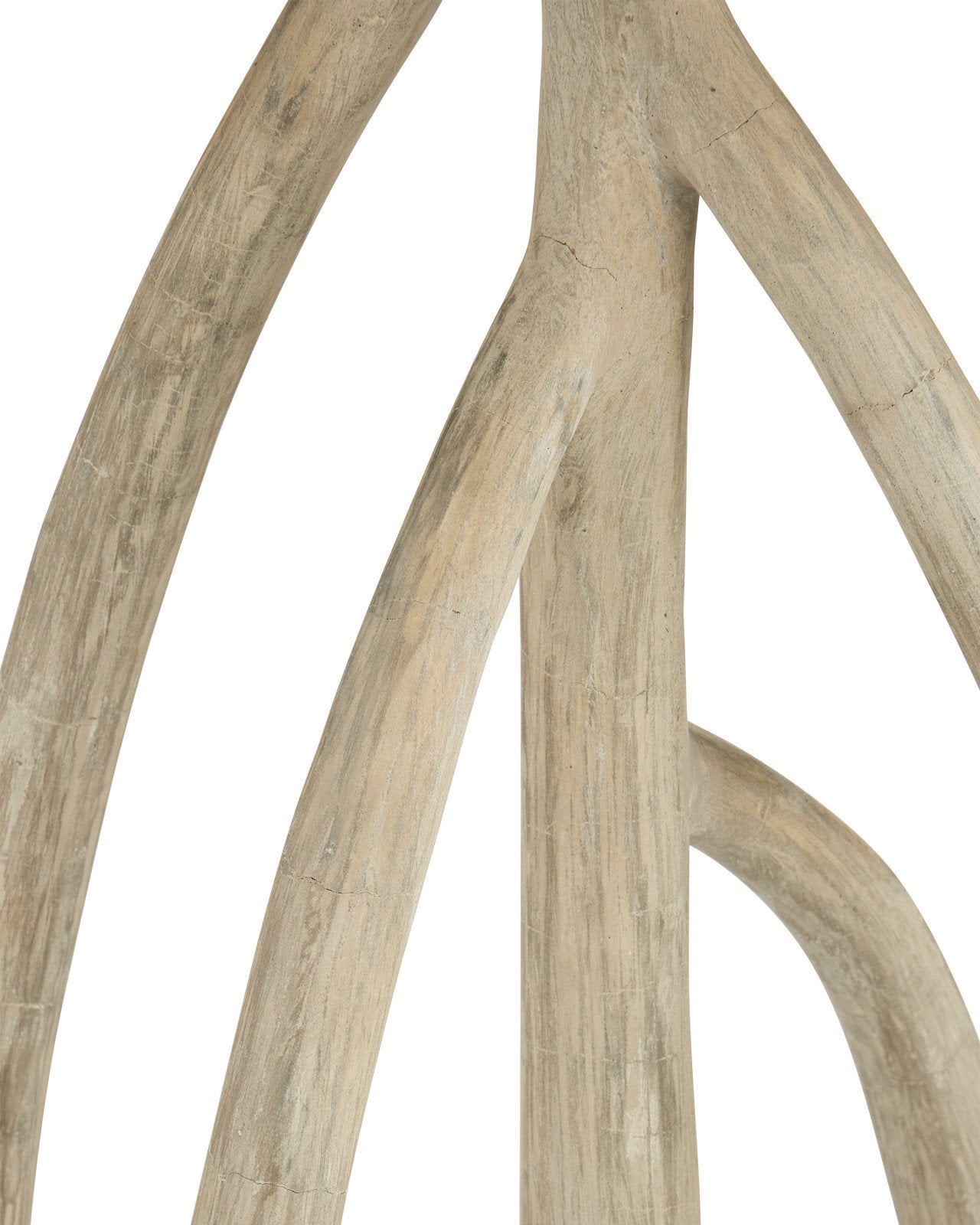 The Mangal Accent Table is a faux bois design made of concrete in a Portland finish; its form inspired by the curving shapes of mangrove roots. Suitable for outdoor use, the table features a slightly shorter middle leg that ensures it always sits level. The sculpted legs show detailed texture work, enhancing the naturalistic character of the piece.