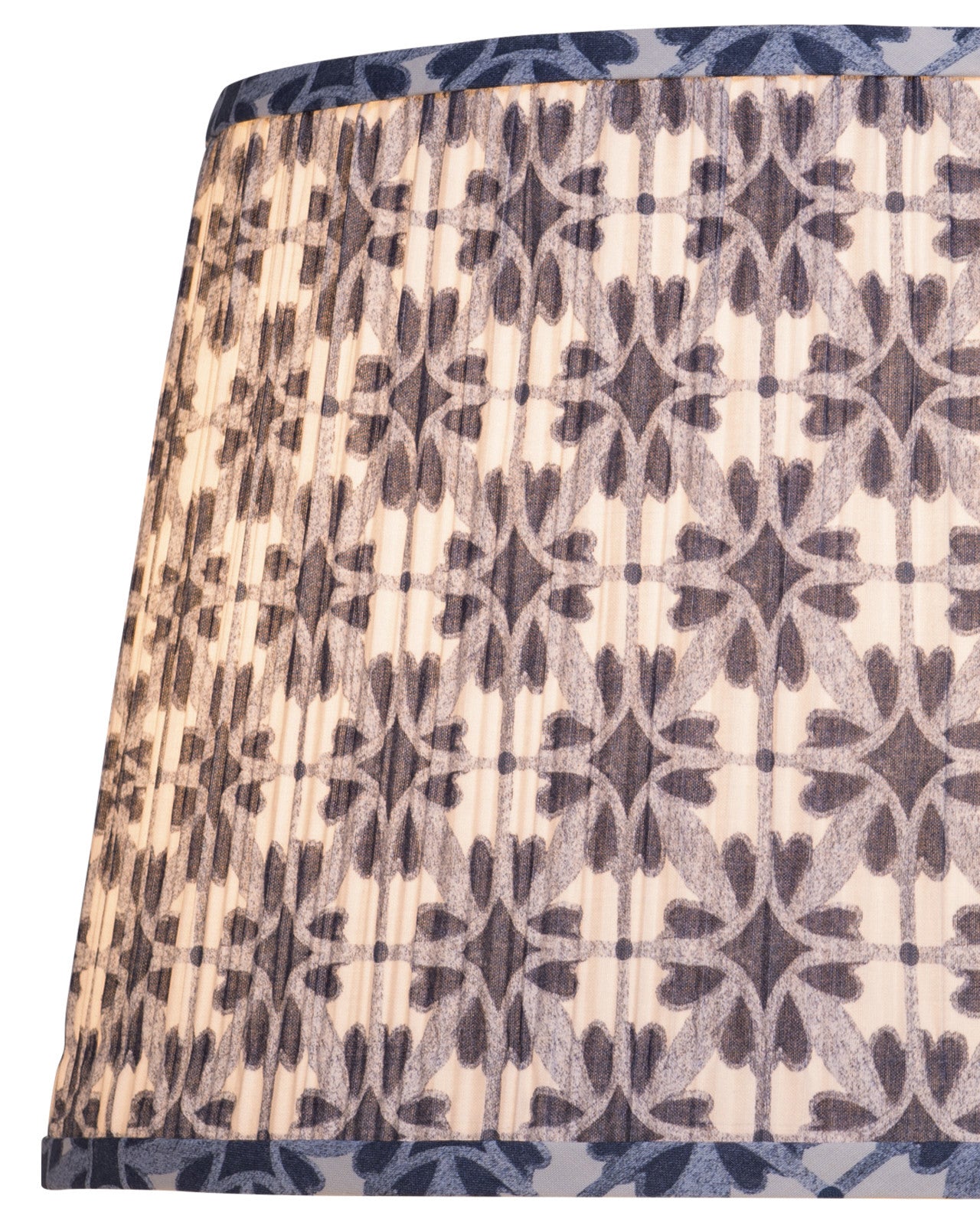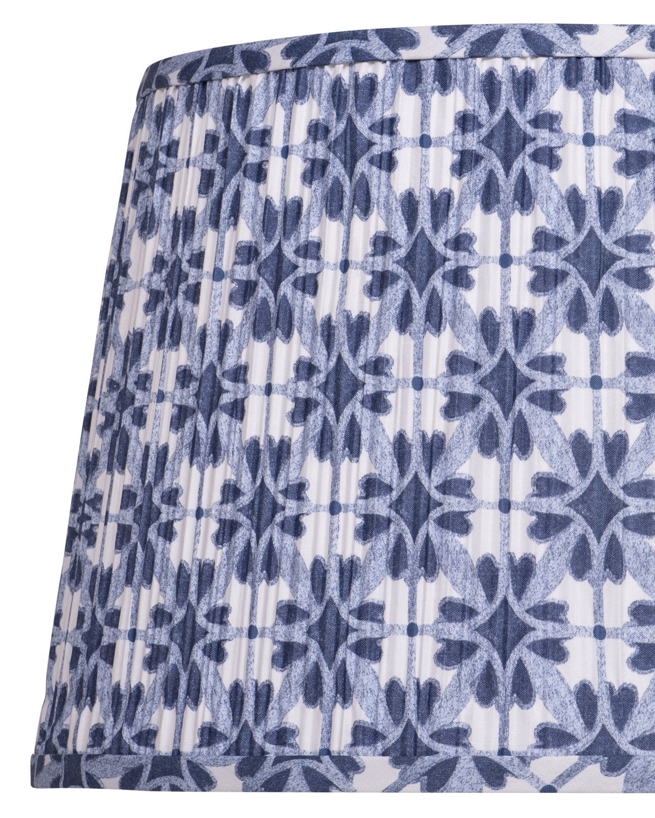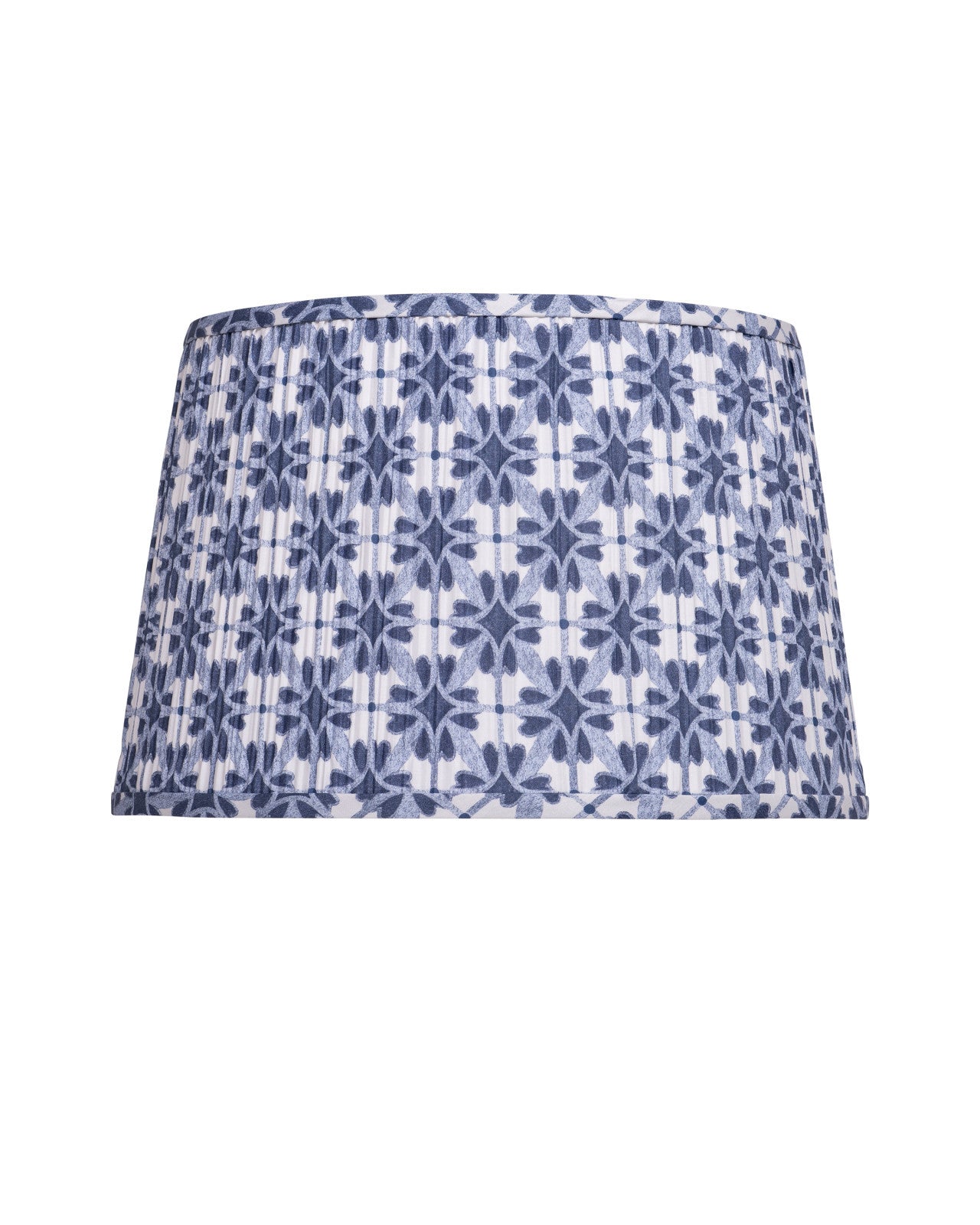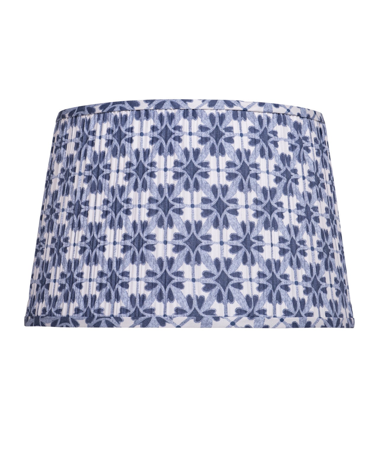 A lush marriage of blue and purple shines on this pleated lampshade from design partner Lacefield Designs.