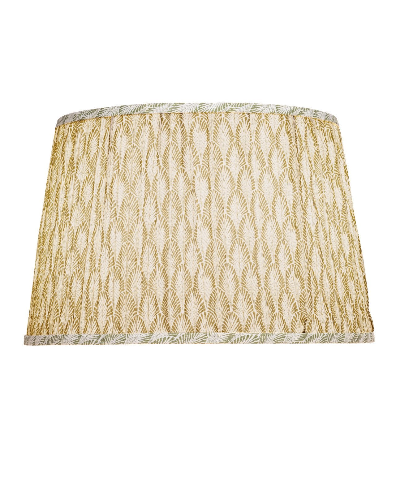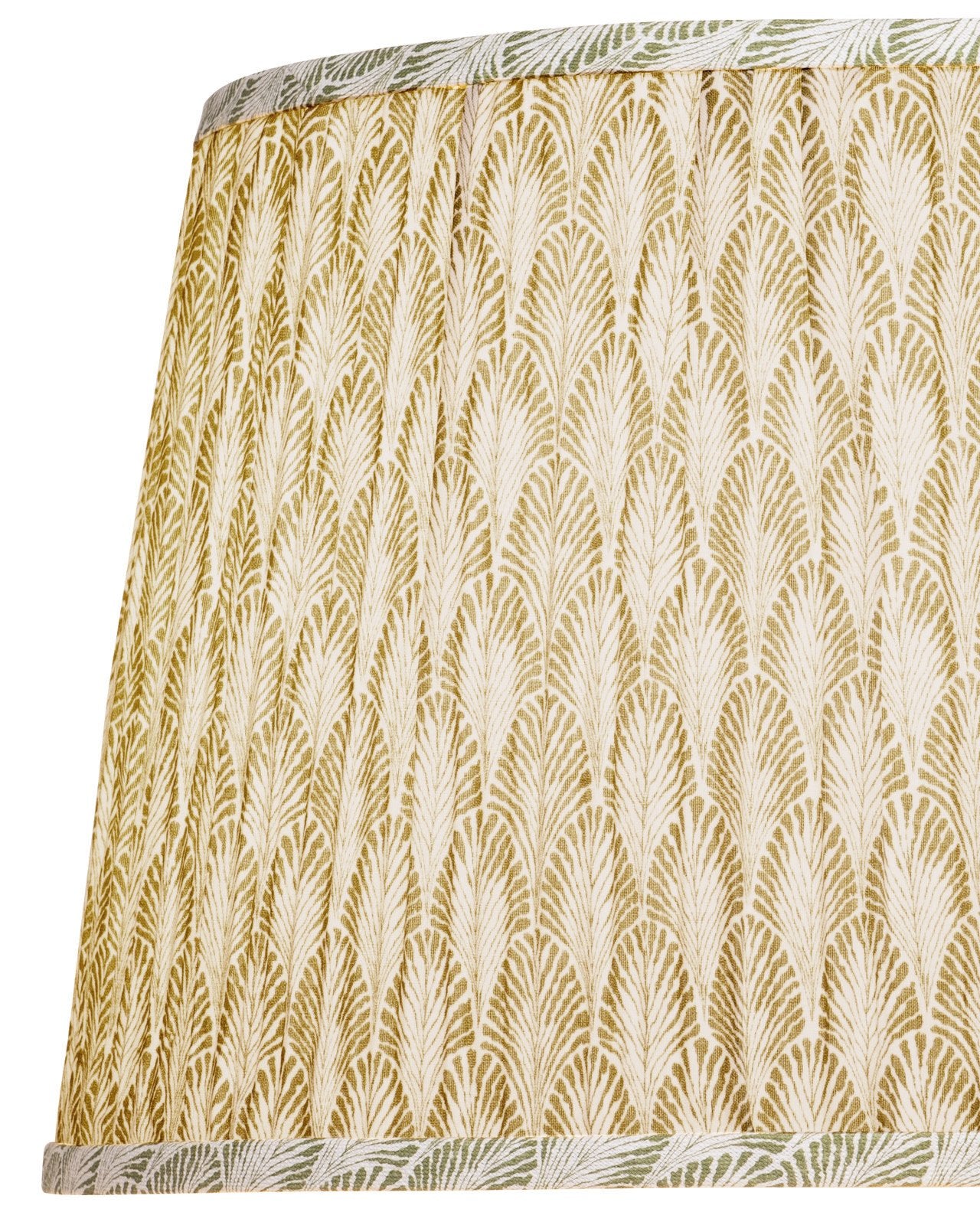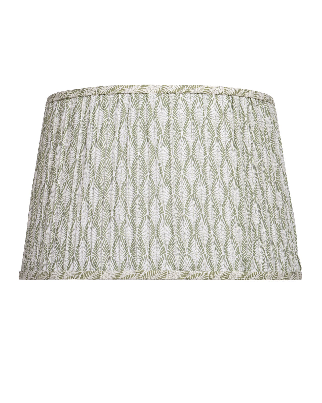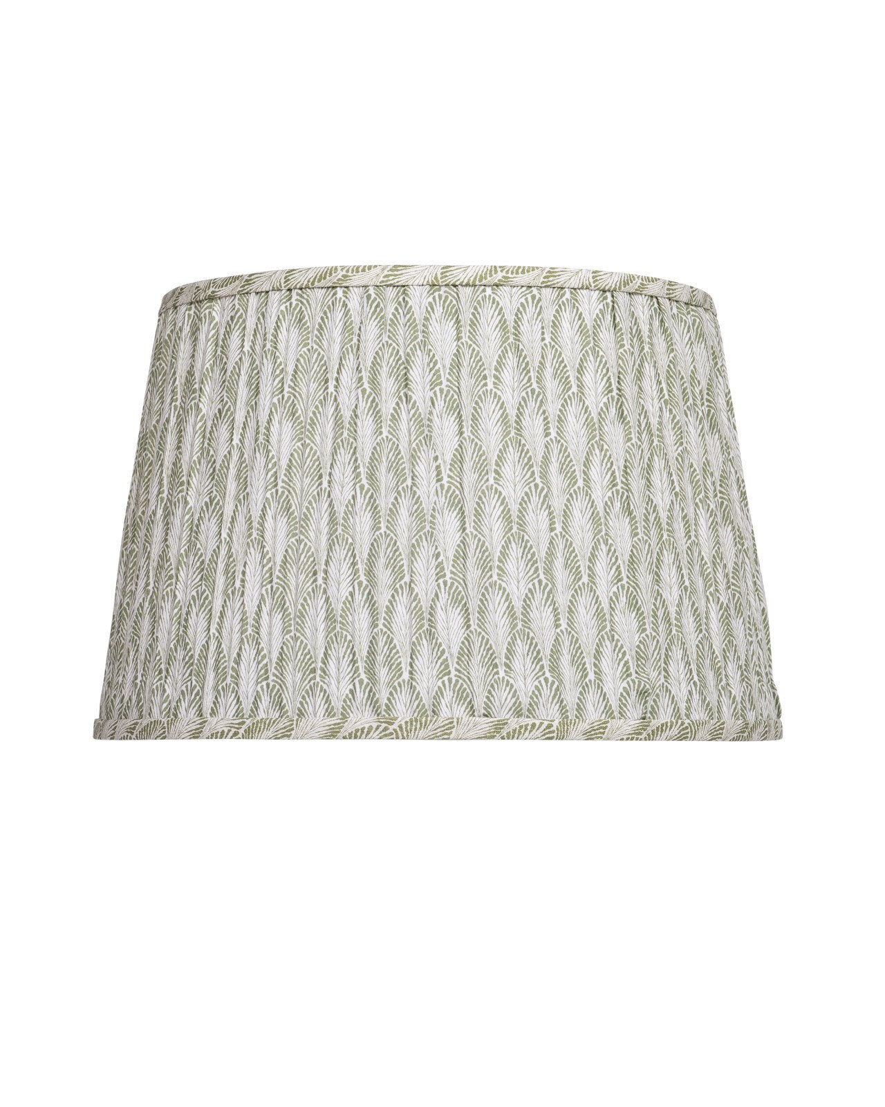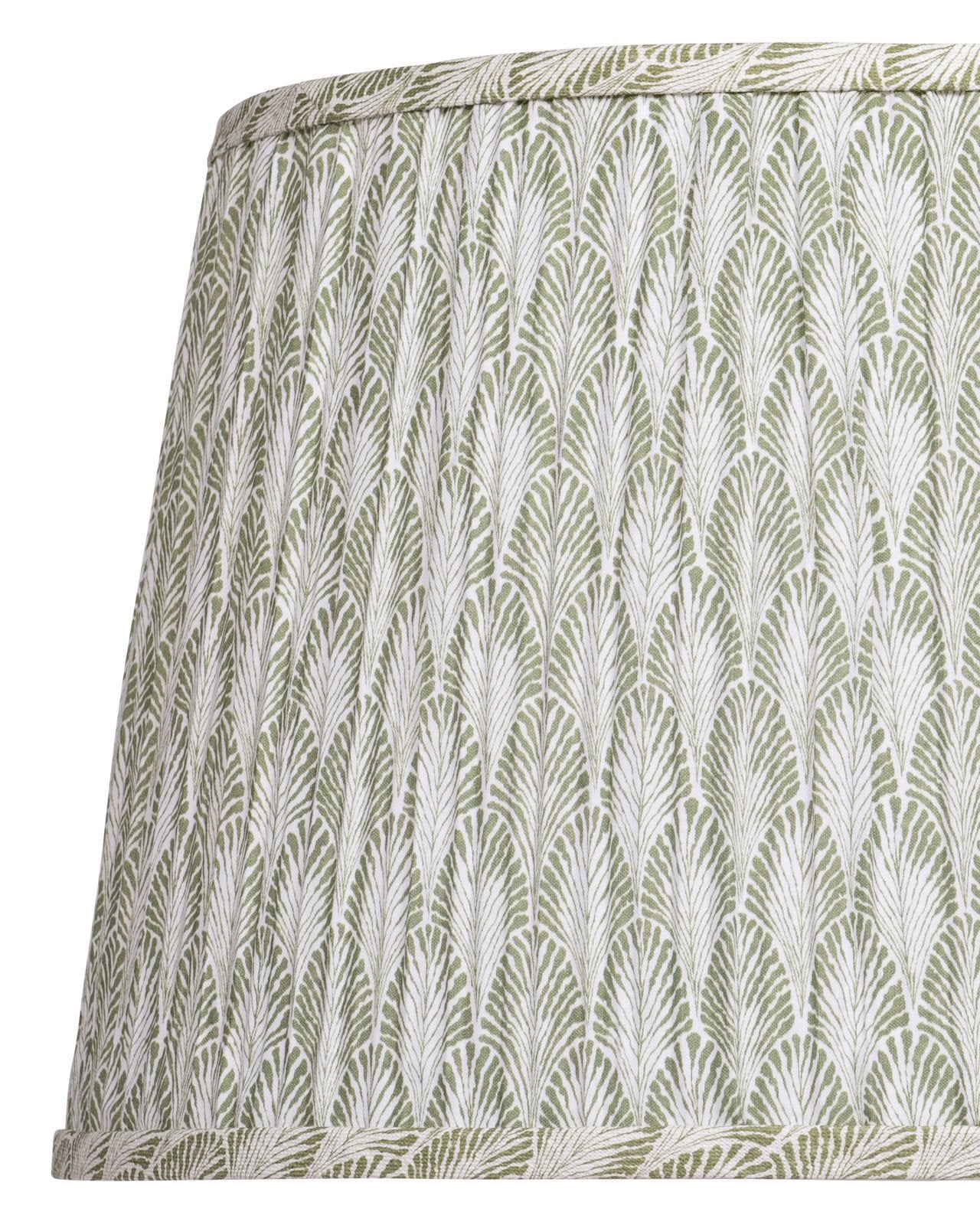 A fan-like grass green pattern dresses this pleated, tapered medium lampshade from design partner Lacefield Designs.