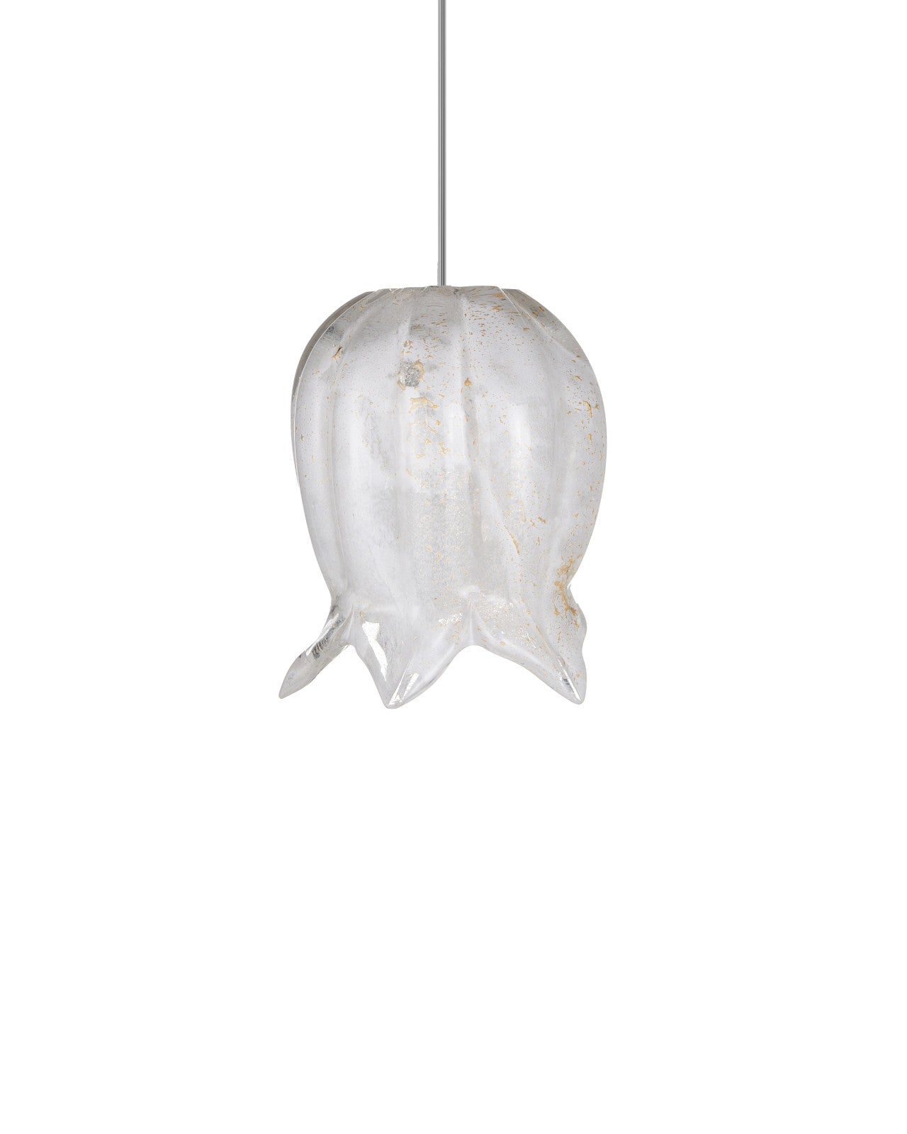 The Polpo White 1-Light Round Multi-Drop Pendant has a bell-shaped shade that echoes the form of an inverted lily-of-the-valley flower. Made of white art glass with pronounced stippling, each shade has subtle variations that make it unique. The textured surface gives the glass a Venetian-inspired character, adding depth and richness to the design.