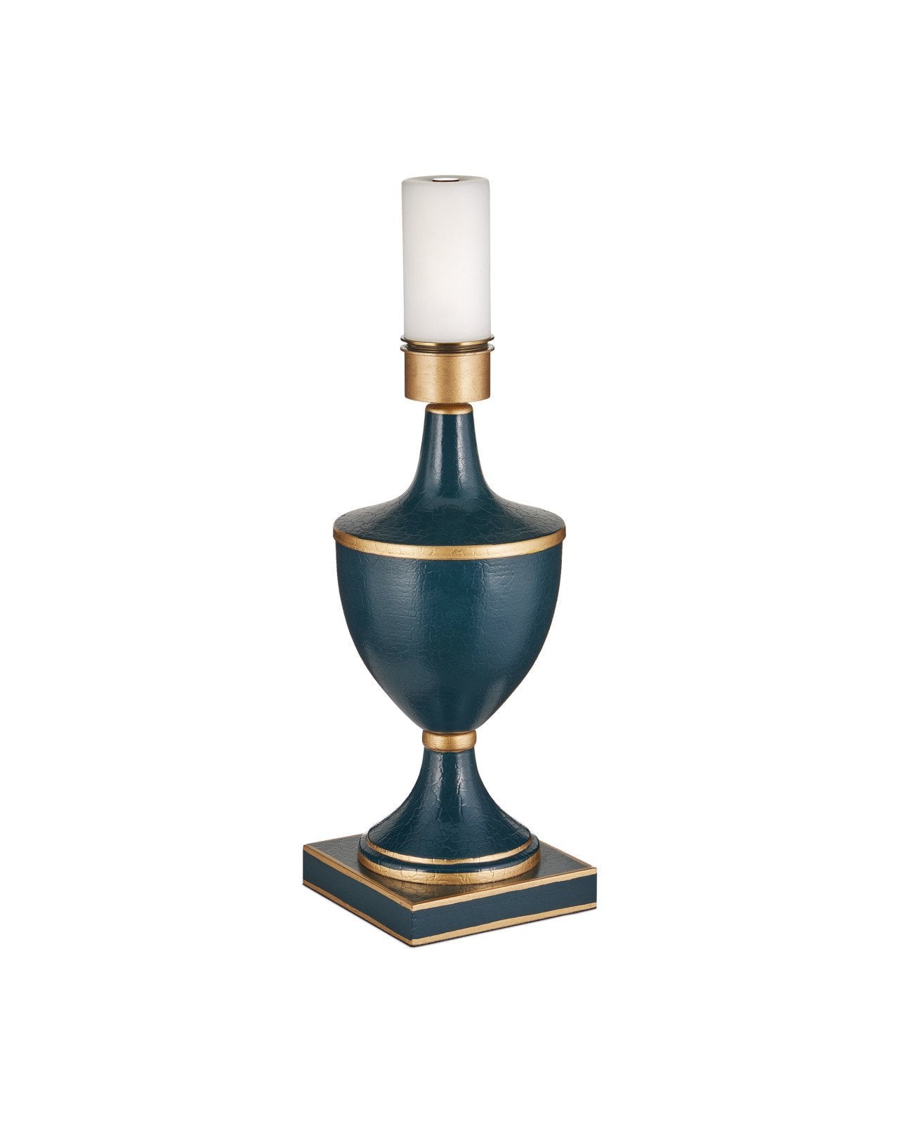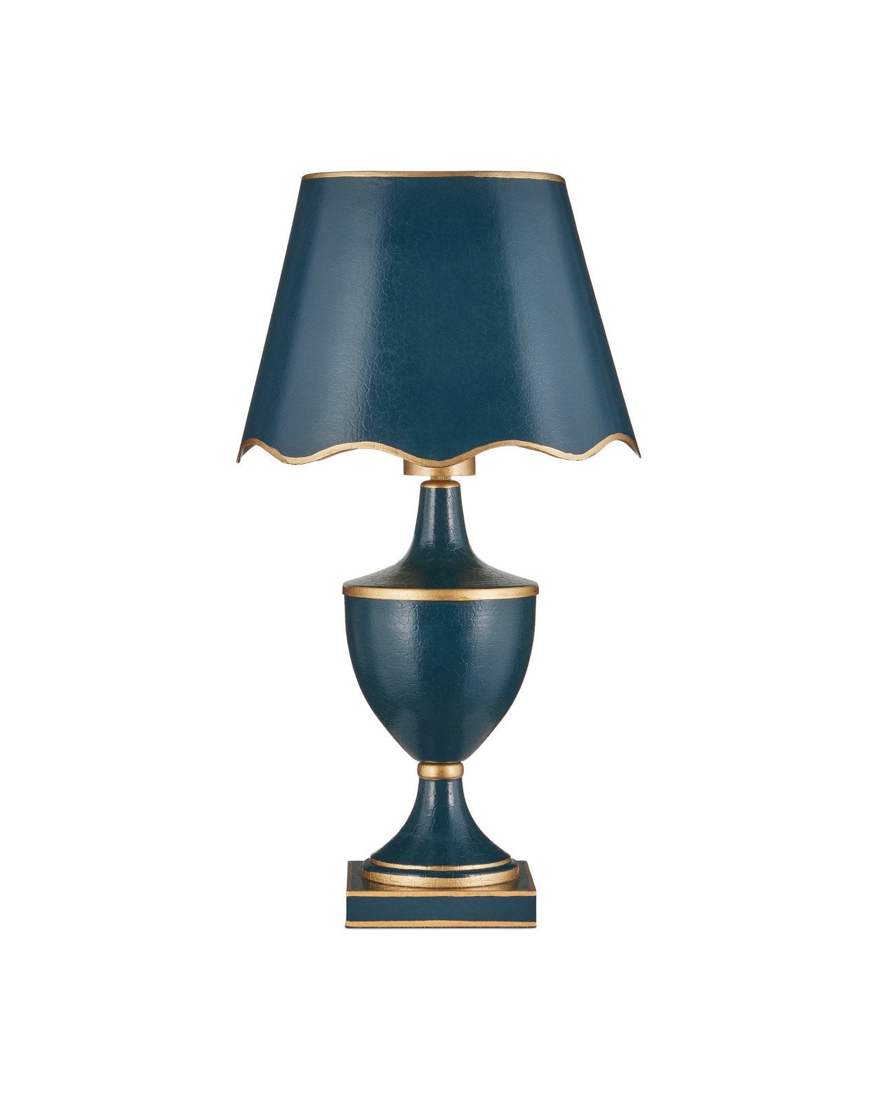 The traditional tole design of the Travelogue Navy Cordless Table Lamp brings timeless beauty to the gold and blue lamp with its trophy-shaped body, empire-shaped shade, and square base. As with fine examples of this artistic treatment, the surfaces purposefully reveal the hand of the artisan who created it. These brushed effects that are subtly textural enhance the portable lamp’s appeal, while the rechargeable bulb provides cordless functionality. The fixture is dimmable and the tole surfaces may vary slightly from lamp to lamp.