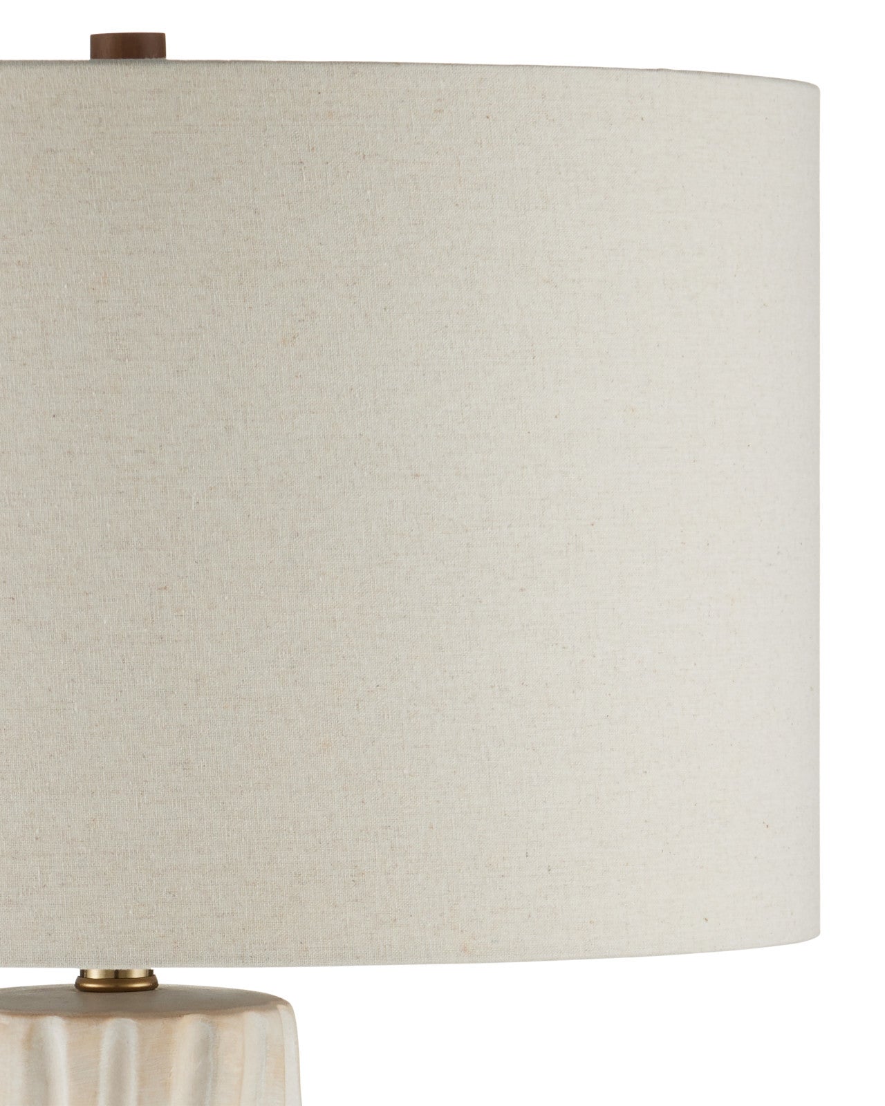 The Water-borne White Table Lamp with its flowing peaks and valleys is made of ceramic that is covered in a creamy off-white glaze. The lamp rises from a natural wood base that adds warmth and grounds the composition. A matching finial fastens the drum shade to the fixture. Due to the artisanal finish, the surface of each lamp could differ slightly.