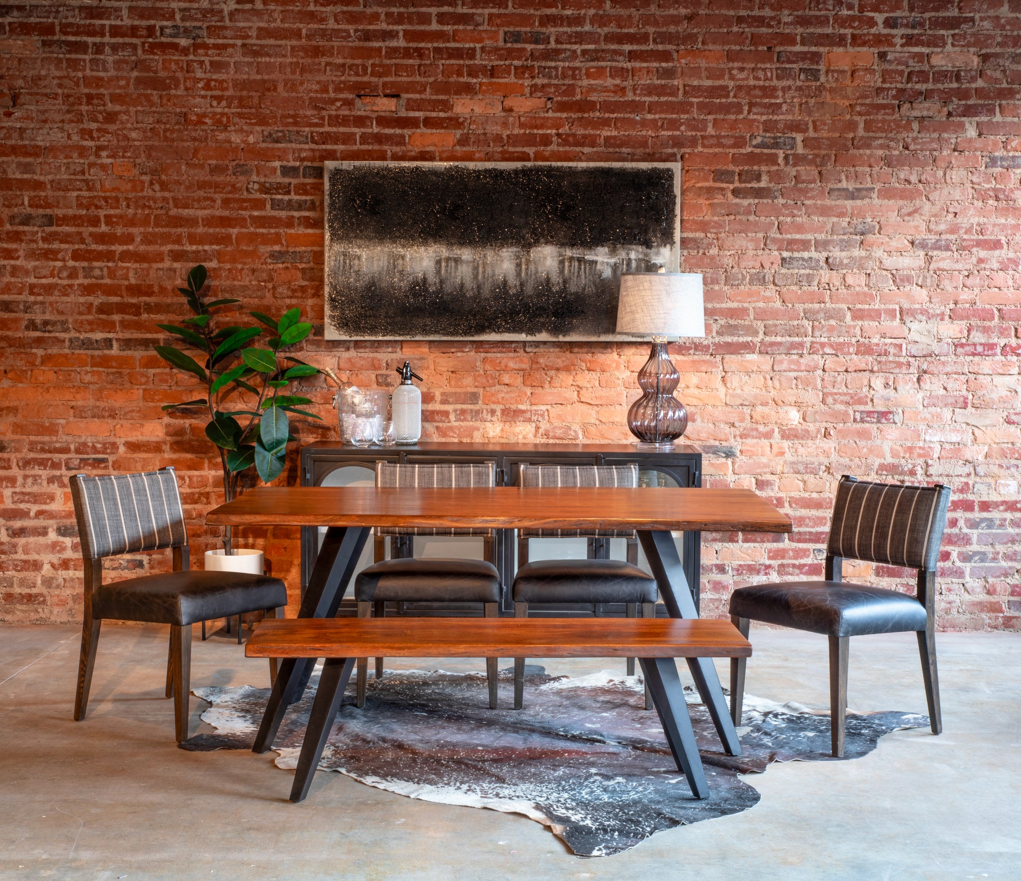 The Knoxville Collection incorporates rustic charm with industrial elegance. Drawing inspiration from the timeless beauty of the Tennessee countryside, these pieces combine the style and durability of solid live-edge acacia wood tops with a rich walnut finish. Handcrafted with precision, this collection adds a touch of natural beauty into your dining space.