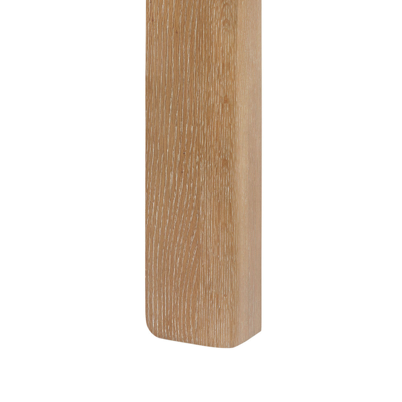 The Larson Dining Table is a substantial, heritage-inspired piece designed for both beauty and utility. Its rectangular top is crafted from stained oak and finished with a clear lacquer that highlights the natural grain. A bold apron runs along the long sides, adding structure and a grounded visual weight. Built for flexibility, the Larson includes two extension leaves—both conveniently stored within the table. A smooth, integrated mechanism makes it easy to expand the surface for gatherings large or small. With its sturdy, rounded legs and thoughtful construction, the Larson is a modern heirloom destined to anchor family meals for years to come.